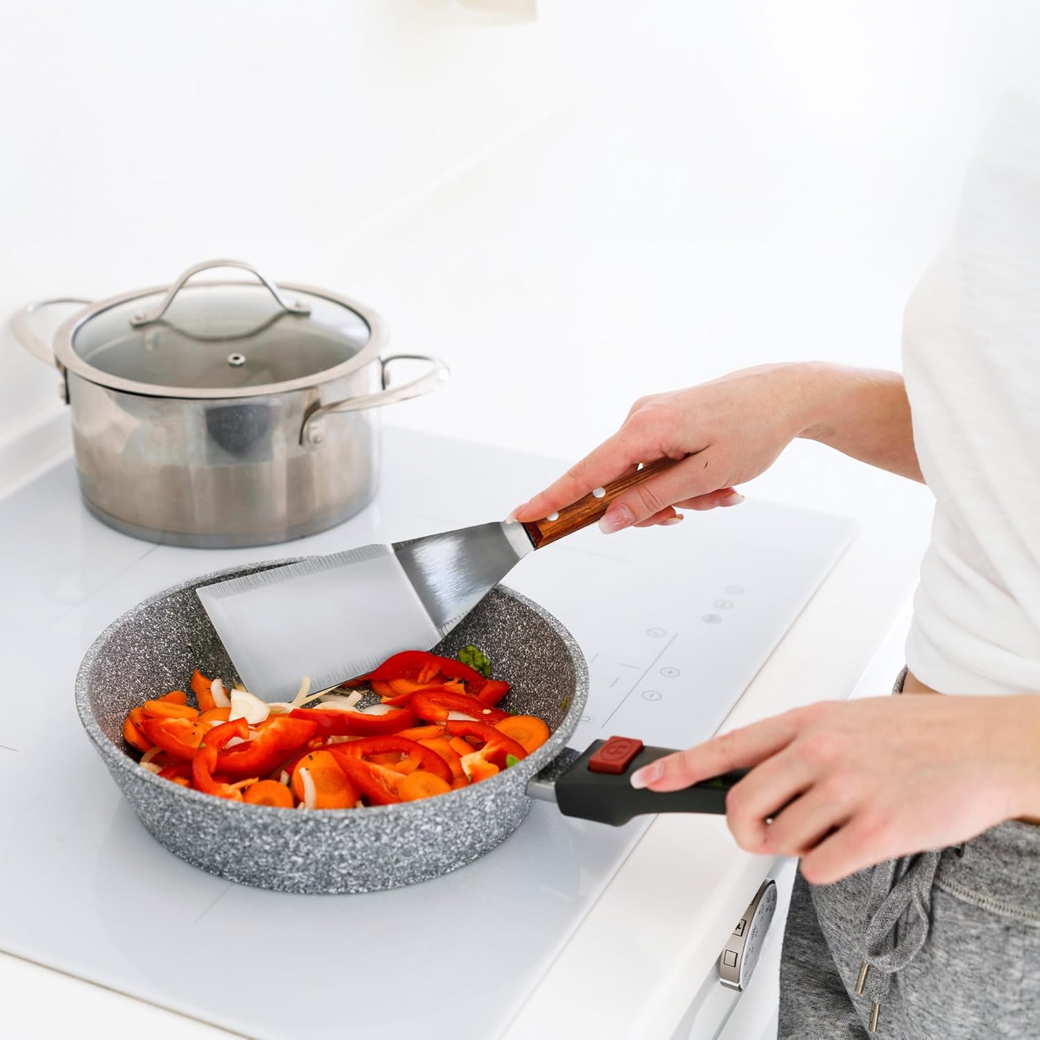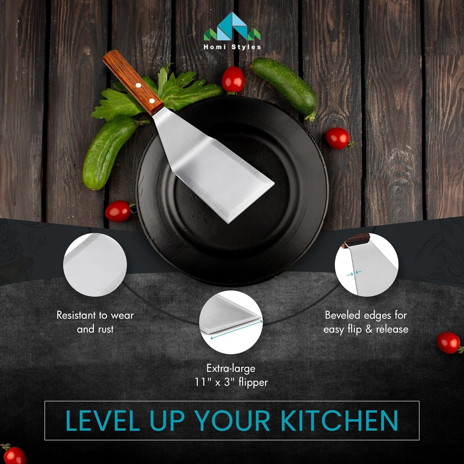 Homi Styles Metal Spatula Beveled Edges, Stainless Steel Grill Spatula with Wood Handle for Skillets, Griddles & Pancake Flipper for Burgers, Omelet, and Versatile for Culinary Task, 11 x 3 inches