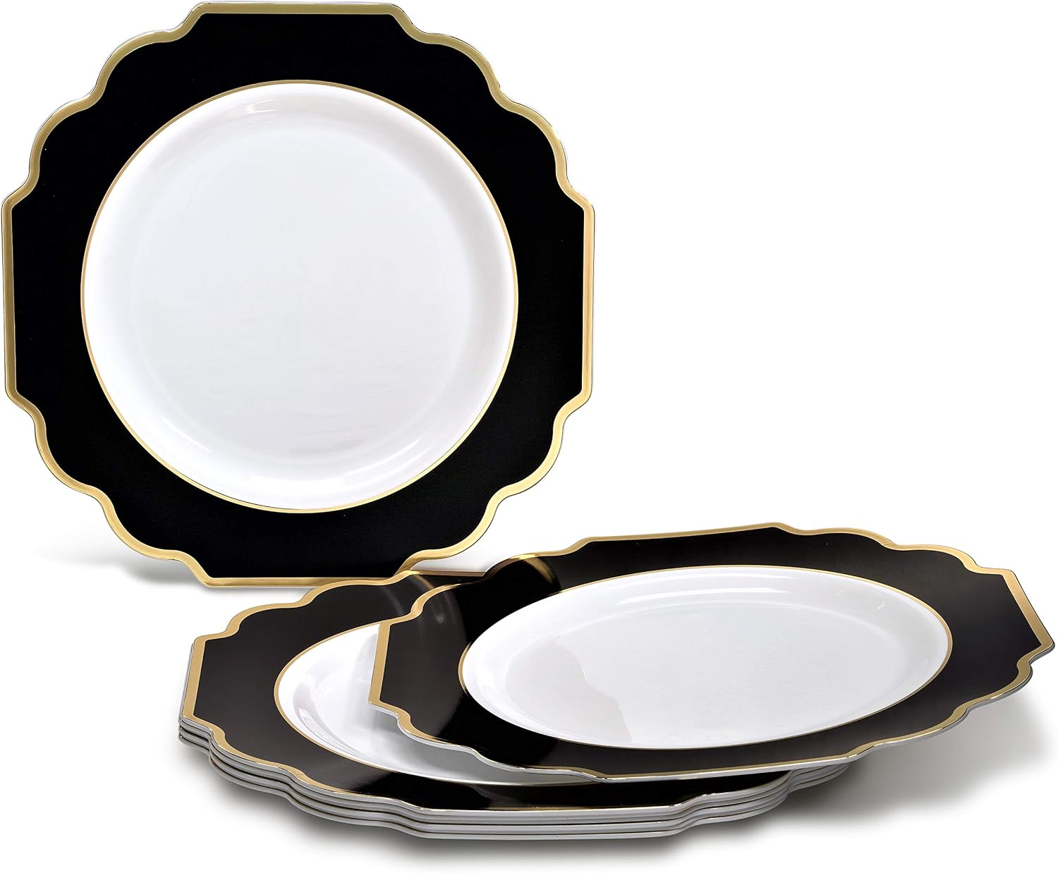 " OCCASIONS " 240 Plates Pack,(120 Guests) Heavyweight Wedding Party Disposable Plastic Plates Set -120 x 10.5'' Dinner + 120 x 8'' Salad / Dessert (Imperial in Black & Gold)