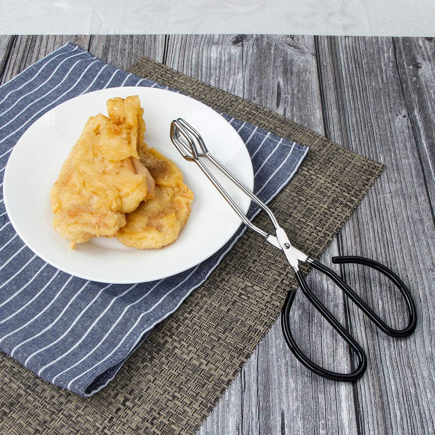 • PROFESSIONAL QUALITY: 1 x 10 inch scissor tongs .The scissors tongs are made of food-grade stainless steel, and the square designed head features non-slip embossing which is very suitable for flipping turning and lifting food