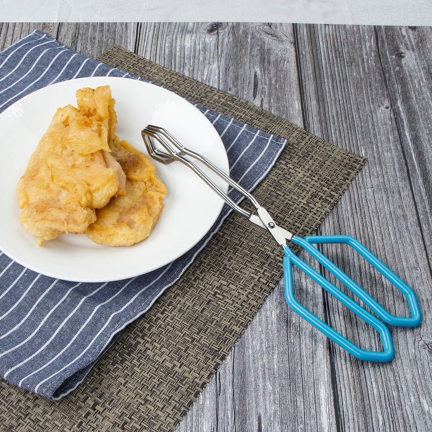 • PROFESSIONAL QUALITY: The scissors tongs are made of food-grade stainless steel, and the square designed head features non-slip embossing which is very suitable for flipping turning and lifting food