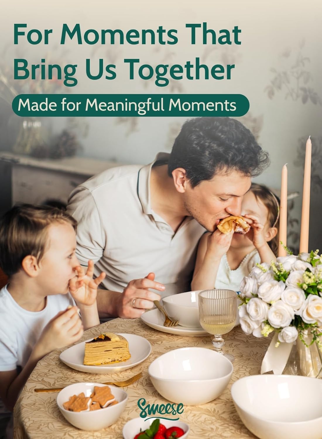 • Versatile Kitchen Essential: Set of 4 Sweese porcelain serving bowls, 42oz capacity each, perfect for salads, soups, pasta, and snacks. Ideal for daily use and special occasions.