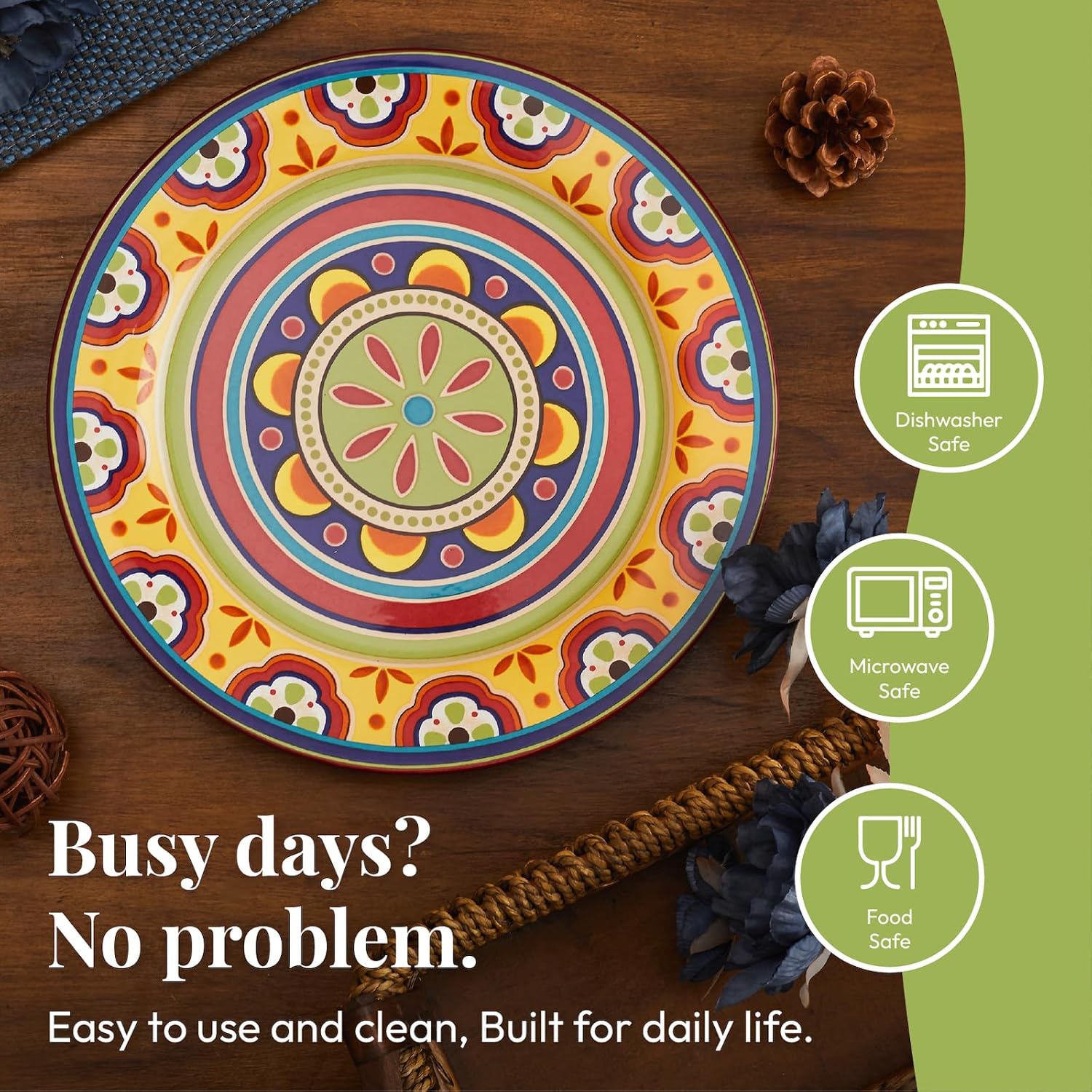 • 【Microwave & Dishwasher Safe】These ceramic dinner plates are microwave and dishwasher safe, offering convenience for heating and cleaning, so you can spend more time enjoying your food and less time cleaning. For safety, we recommend using oven mitts when handling hot plates and wipe off moisture before microwaving.