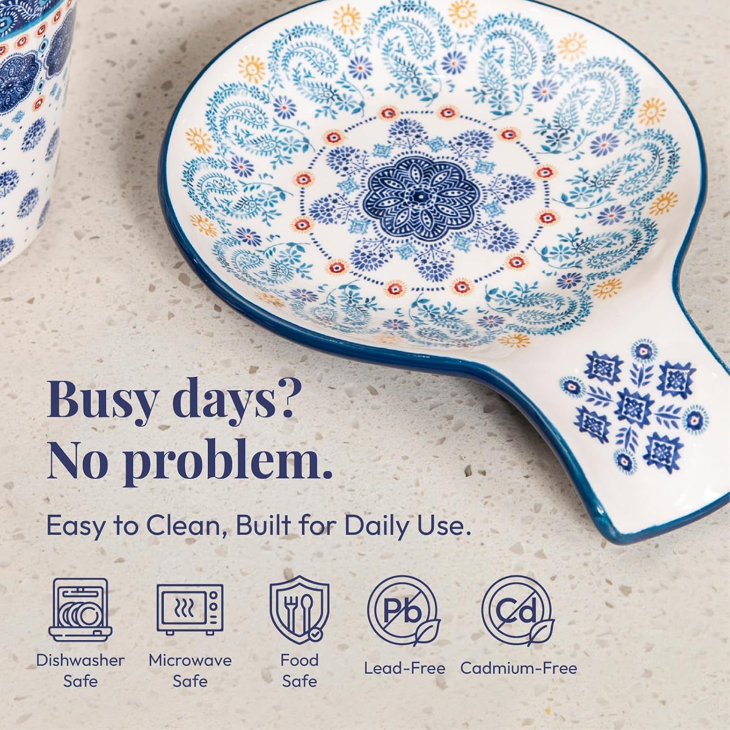• 【Keep Your Counter Clean】This ceramic spoon rest catches drips and spills from cooking utensils, keeping your kitchen spotless. Perfectly sized (5.5 x 7.5 inches) for spoons, ladles, spatulas, and more. It's great for serving spoons during family meals, or for holding spoons on the coffee counter for stirring your coffee or tea.