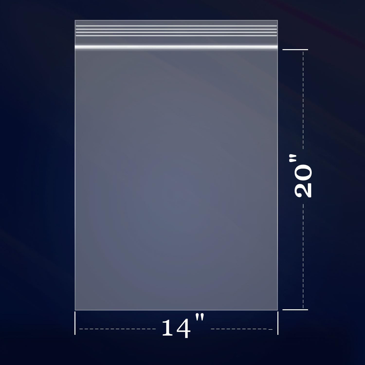 • [Specifications] -1000 Count 14" x 20" Usable Dimension (excludes the zipper), 2.0 Mil Thickness Reclosable Zip Poly Bags.We have various sizes for you to choose from.