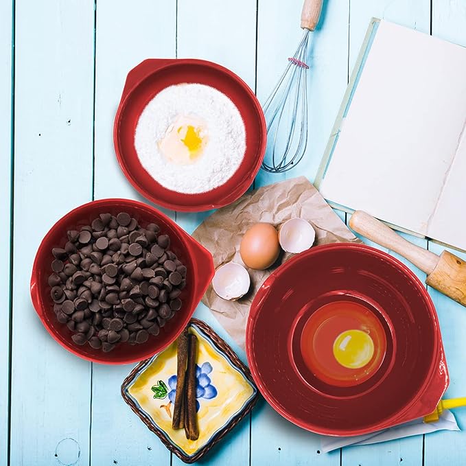 • EMBEDDED POUR SPOUTS – Each bowl is designed with a pour spout on one end and a lip on the other end for easy handling. Perfect for trained chefs, bakers and beginners alike, these bowls make it easy to mix, stir and pour batters or sauces.
