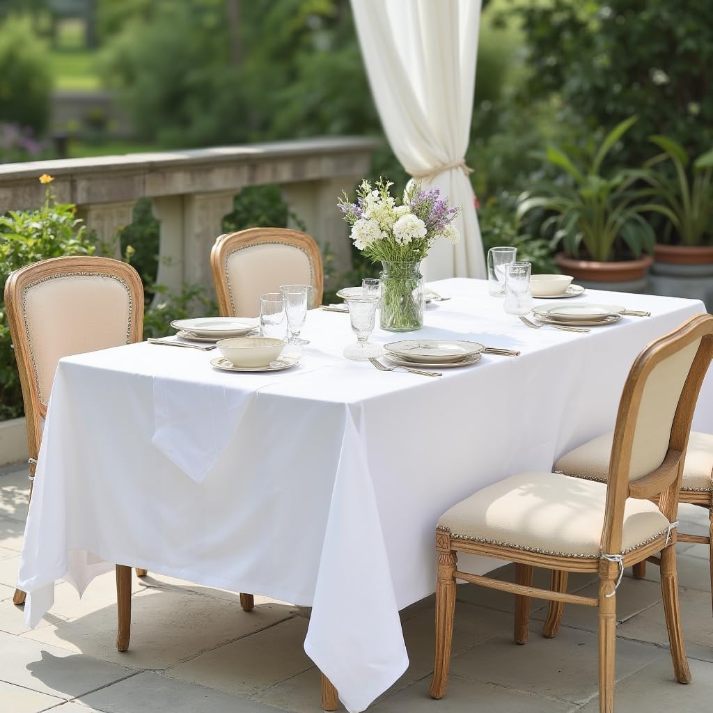 sancua Rectangle Tablecloth - 60 x 84 Inch - Stain and Wrinkle Resistant Washable Polyester Table Cloth, Decorative Fabric Table Cover for Dining Tables, Buffet Parties and Camping, White
