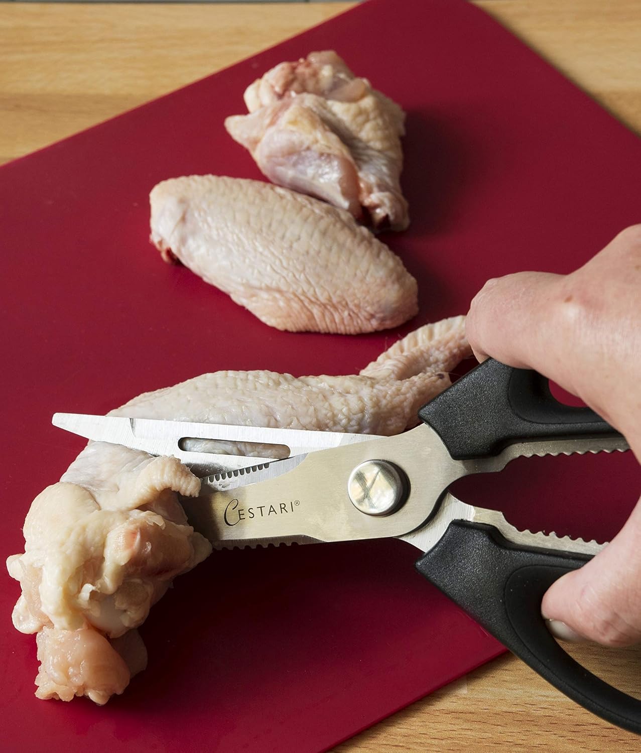 Kitchen Scissors: Heavy Duty Stainless Steel Utility Kitchen Shears for Poultry, Vegetables, Meat, Seafood, Herbs | Multi-Function Cooking Scissors with Large Black Soft Grip Handles by Cestari