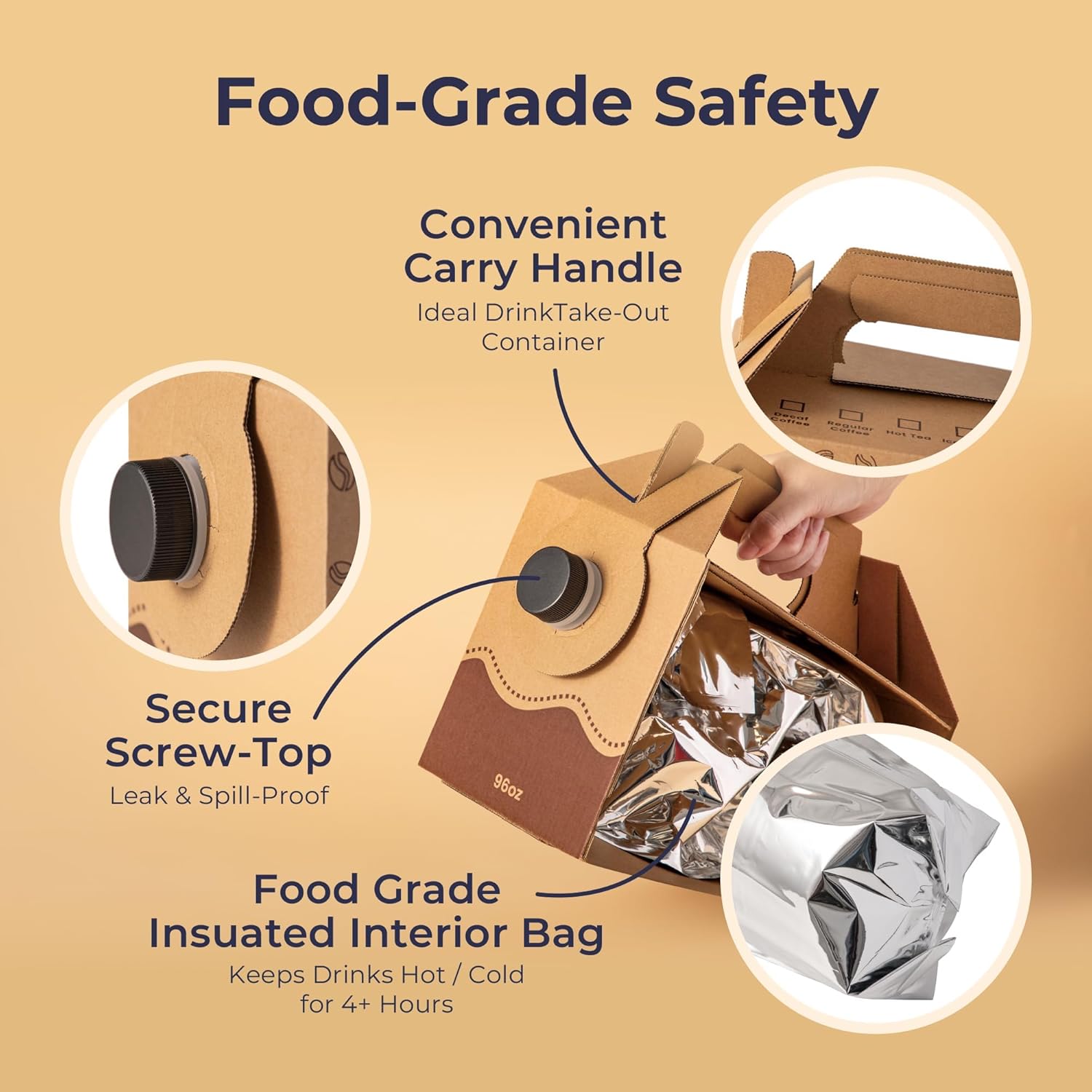 • Easy to Carry: FMP disposable coffee dispenser container with handle offers the benefits of being lightweight, providing thermal insulation, eco-friendly, recyclable and easy to delivery. Our sturdy handle provides a secure grip, allowing you to confidently carry your coffee without any mishaps, making them the perfect choice for catering delivery, outdoor adventures, or even a cozy afternoon in the park.