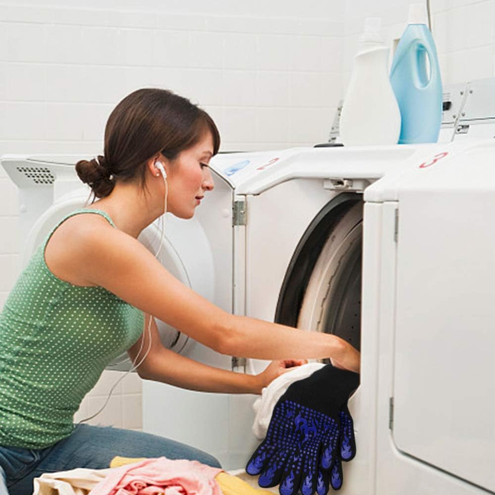 • Easy to clean and store: Our heat resistant gloves can be easily cleaned either by machine washing or hand washing. The inner side of the cuffs features a convenient loop for hanging and drying, making storage a breeze.