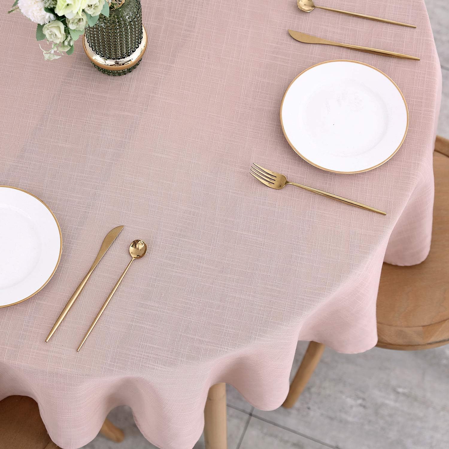 maxmill Lux Faux Linen Tablecloth with Slubby Yarn Textured Weaves Wrinkle Resistant Anti-Shrink Soft Table Cloth for Kitchen Dining Restaurant Tabletop for Event Holiday Dinner Round 70 Inch Blush