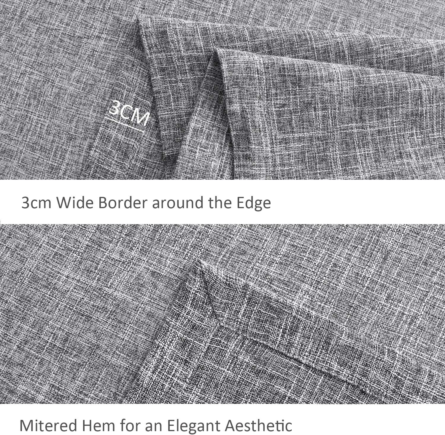 • Our table cloths are made of high-quality polyester faux linen yarn, with 2-tone slubby texture. It is more durable than real linen yet soft and supple; while protecting table surface, our tablecloth also adds a sense of understated luxury to your dining scene.