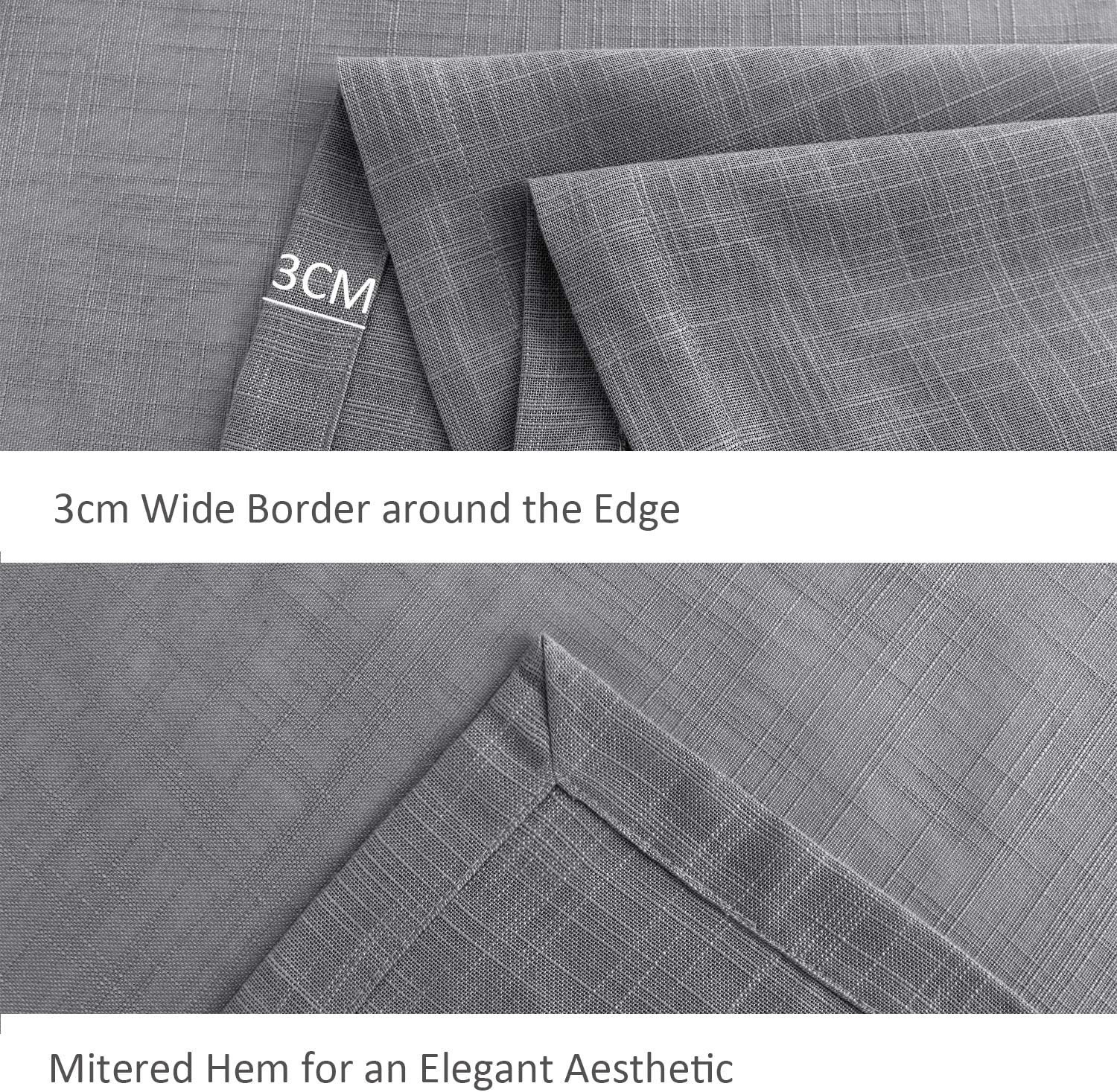 • Our table cloths are made of high-quality polyester faux linen yarn, with slubby texture. It is more durable than real linen yet soft and supple; while protecting table surface, our tablecloth also adds a sense of understated luxury to your dining scene.