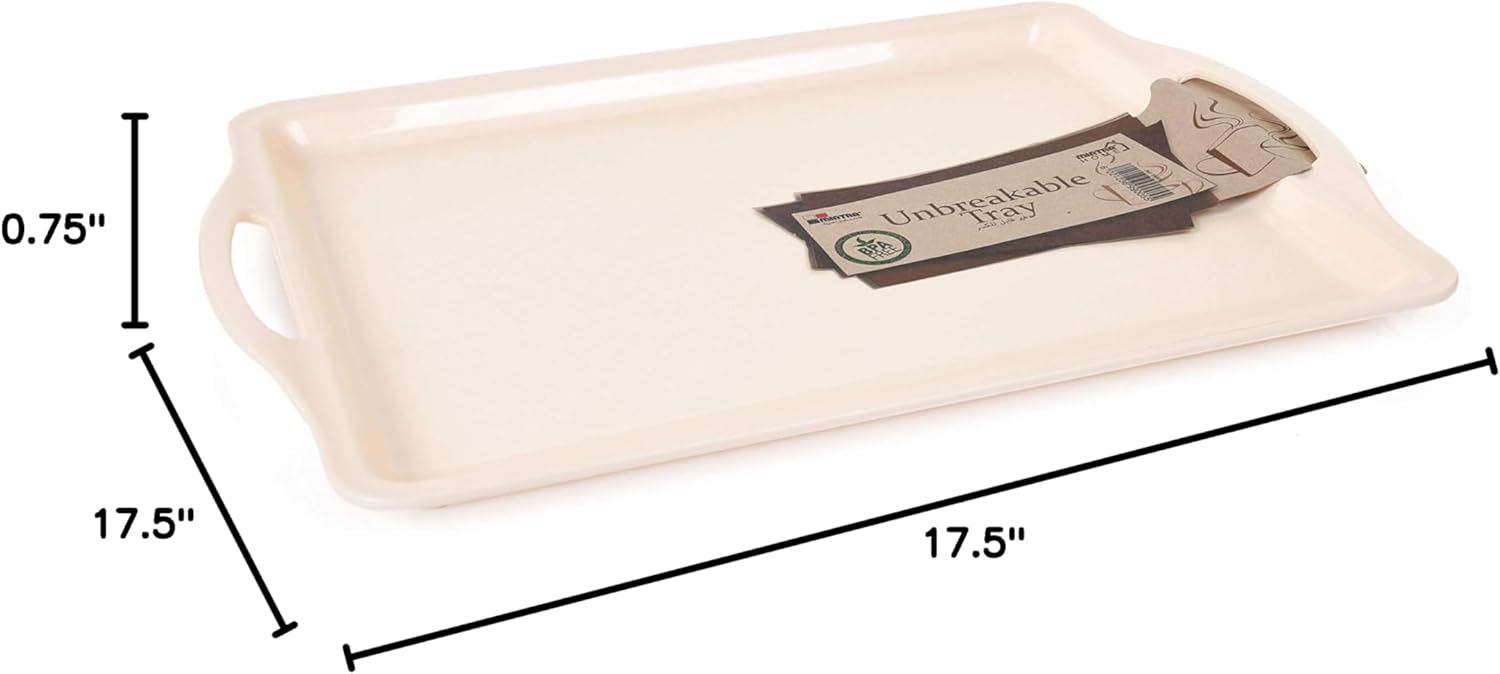 Mintra Home Durable Serving Tray - (1pk, CREAM) Unbreakable, Breakfast, Cafeteria, Fast Food, Handles