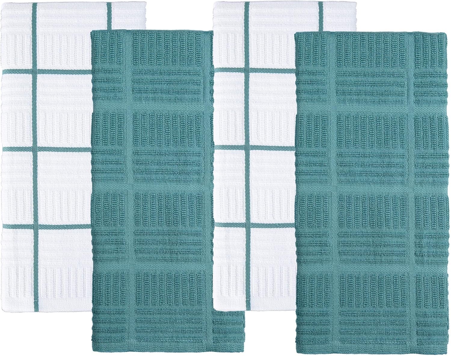 • SET OF FOUR VALUE PACK: Collection includes 2 solid-colored towels and 2 classic windowpane towels available in a variety of rich colors to coordinate with any kitchen décor.