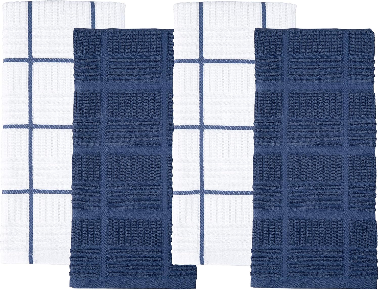 Sticky Toffee Cotton Kitchen Towels Set of 4, Dark Blue and White, 28 x 16 in, Absorbent Reusable Hand and Tea Towels for Kitchen Cleaning