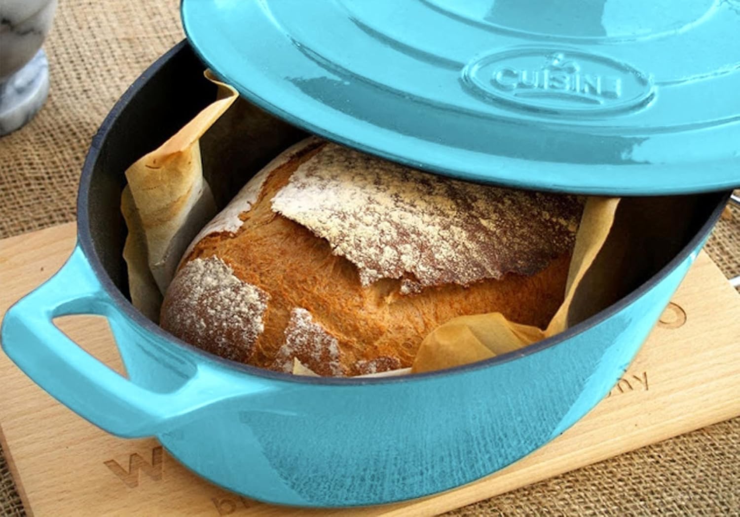 La Cuisine Enameled Cast Iron Oval Dutch Oven Casserole Pot with Lid 5 QT Internal Matte Black Enamel for bread baking, 2-ton Teal Enamel Coating Finish Exterior,Oven Safe up to 500Β° F