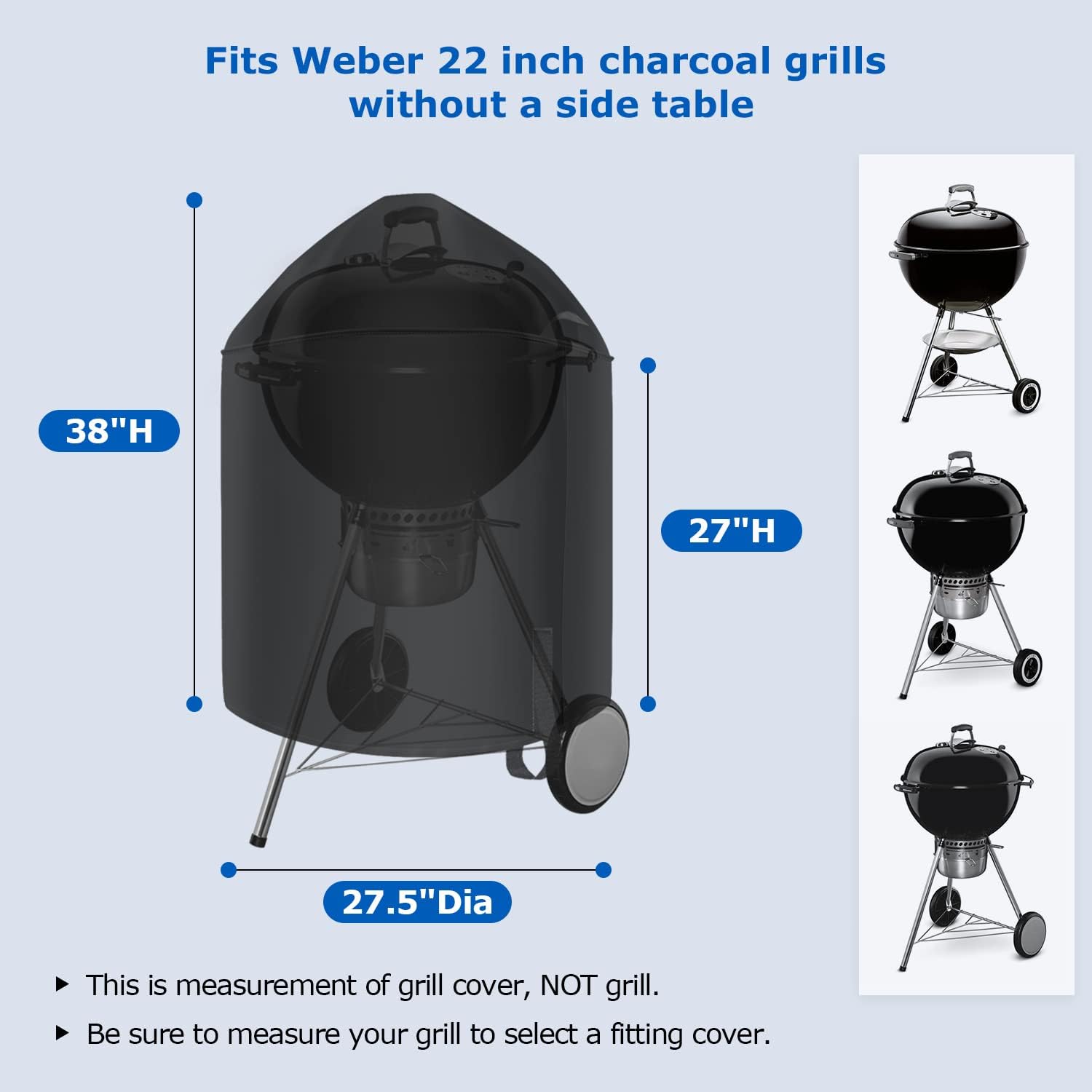 • ► Dimensions - Measures 27.5”Dia x 38”H. Designed to compatible for most popular brands grill like Weber 22 Inch charcoal grills without a side table, Big Green Egg BGE, Char-Broil, Kingsford grills and more grills up to 26” Dia at the widest point. Does NOT fit smokey mountain cooker. Please measure your grill before purchasing.