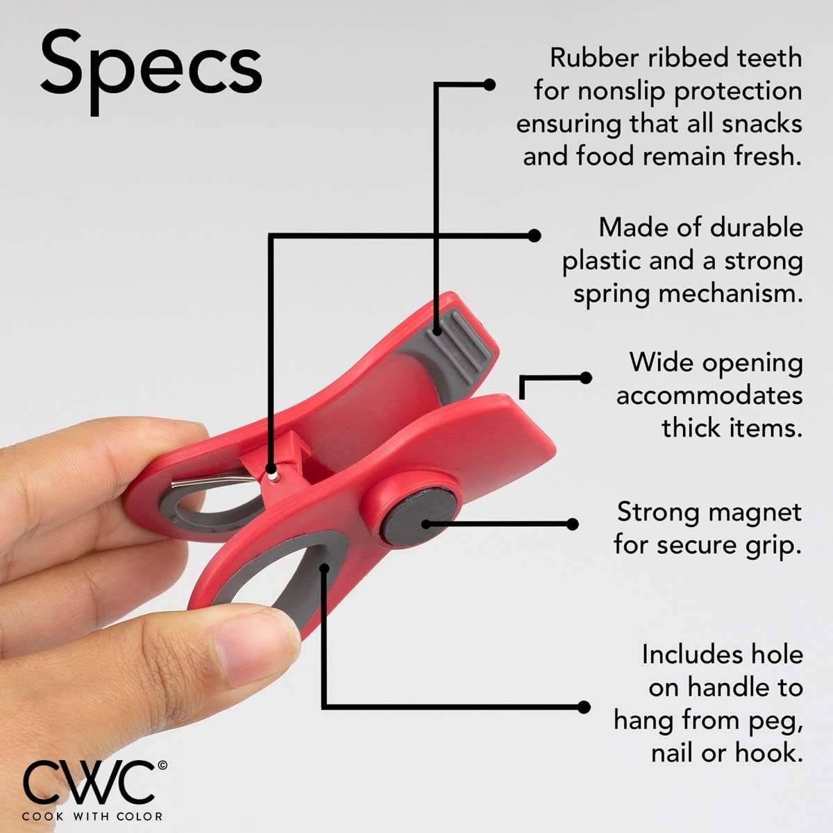 • Bag clips are one of those things you never have enough, invest in a set of durable, long lasting, soft touch, kid friendly Cook with Color food bag clips and organize your home and office with a colorful set of spring clips.