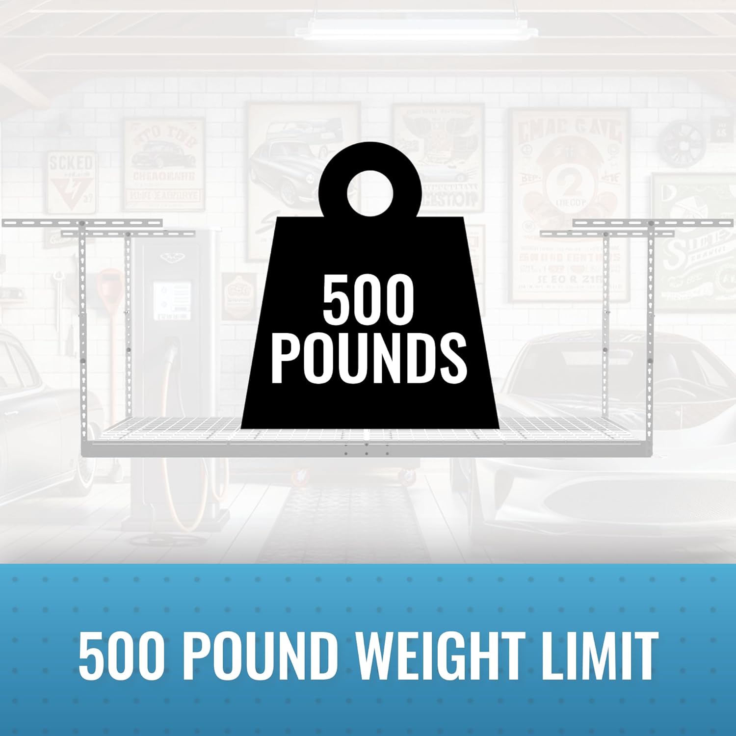 • MORE STORAGE, LESS CLUTTER: Designed with your storage needs in mind, ceiling mounted overhead garage storage helps you get organized by getting your things off the floor and out of the way saving valuable space in your garage. This hanging storage system is a great space saver; allowing you to utilize previously unused space providing you more storage and better organization.