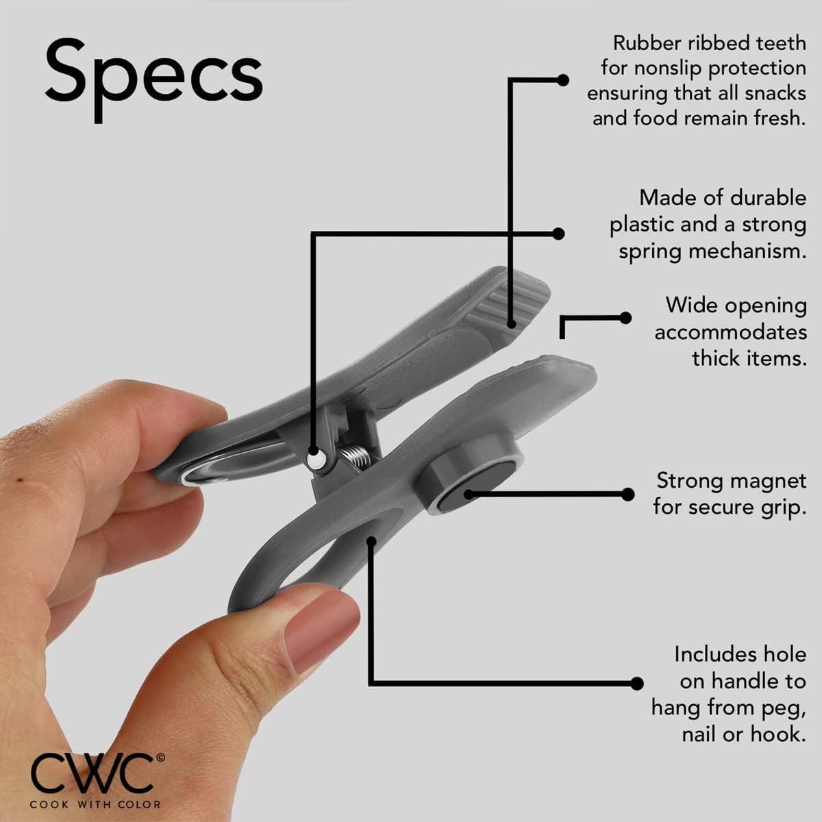 • Bag clips are one of those things you never have enough, invest in a set of durable, long lasting, soft touch, kid friendly Cook with Color food bag clips and organize your home and office with a colorful set of spring clips.