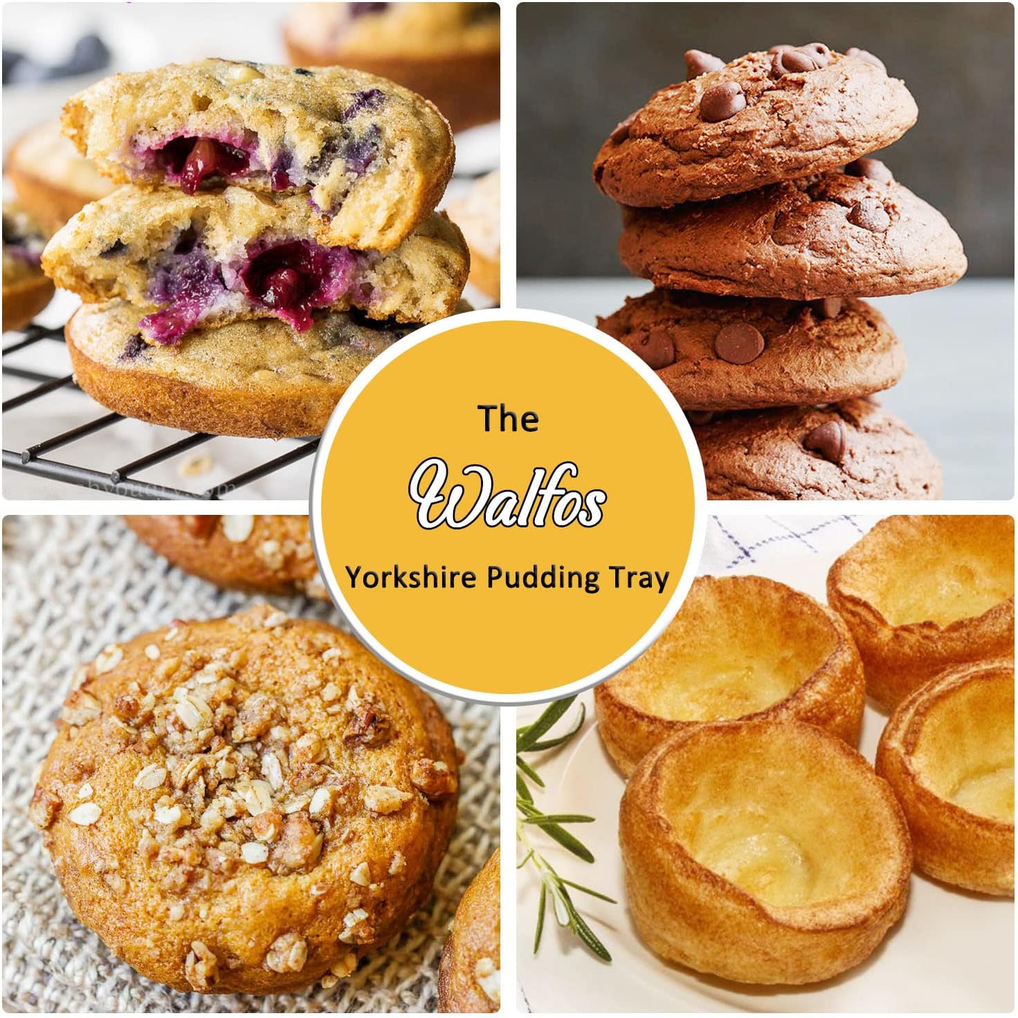 • NON-STICK, FLEXIBLE Silicone ! JUST POPS OUT! Without the Use of Extra Butter or Flour.WITHOUT Chemical Coating.Unlike aluminum pan, WALFOS brand silicone jumbo muffin top pan don't need coating to keep NON-STICK, more healthy.NO MORE METAL RUSTING!!