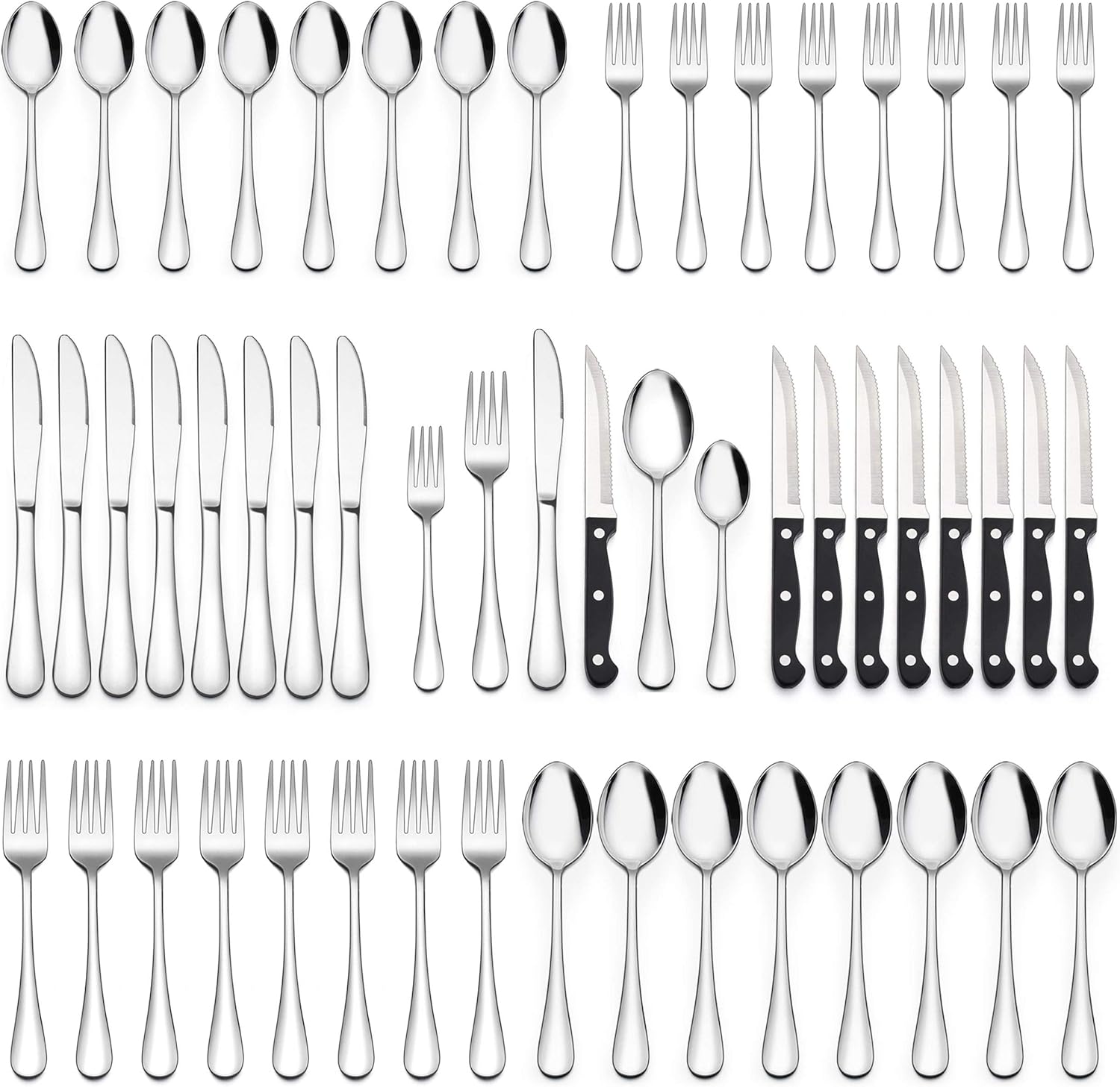 • 72 Piece flatware set for 12, includes 12 dinner spoons, 12 teaspoons, 12 dinner knives, 12 steak knives, 12 dinner forks, 12 salad forks, a value set great for family daily use, catering, party, gathering, banquet, wedding, restaurant, hotel and more occasion