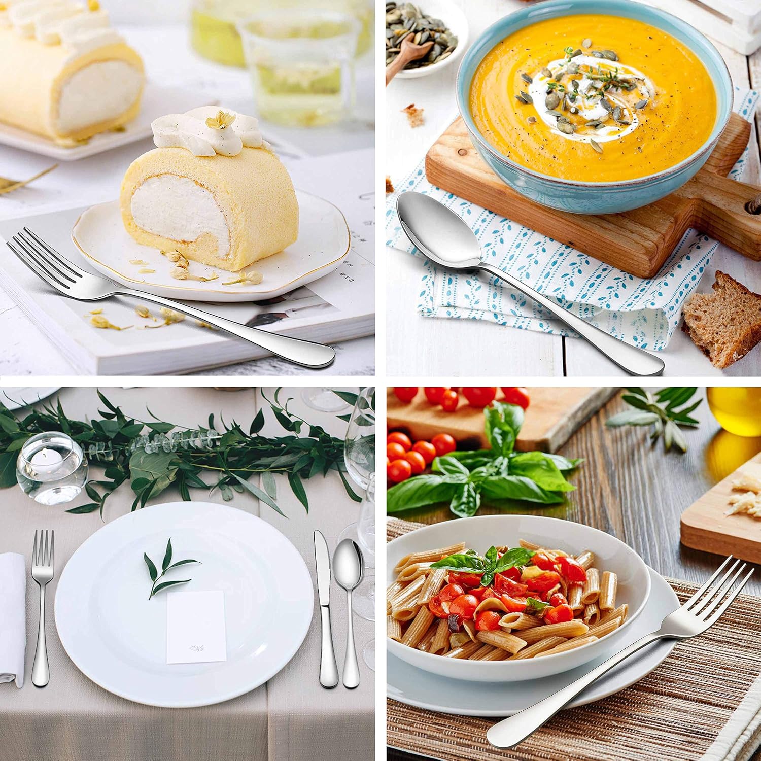 • Nice weight, this silverware set are in right size with nice weight, neither too flimsy nor too heavy, offer good grasp for both adults and older children, wonderful gift on wedding, housewarming, birthday, Christmas, Thanksgiving and more