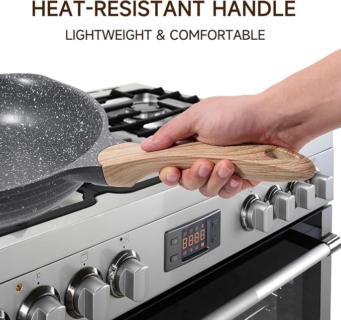 • 【Health & Safe Nonstick Coating】Our Marble stone non-stick coating outperforms traditional nonstick pots and pans surfaces. Independently certified 100% free from PFOA/PFOS/lead/cadmium and other harmful chemicals, ensuring your daily cooking is always safer and healthier
