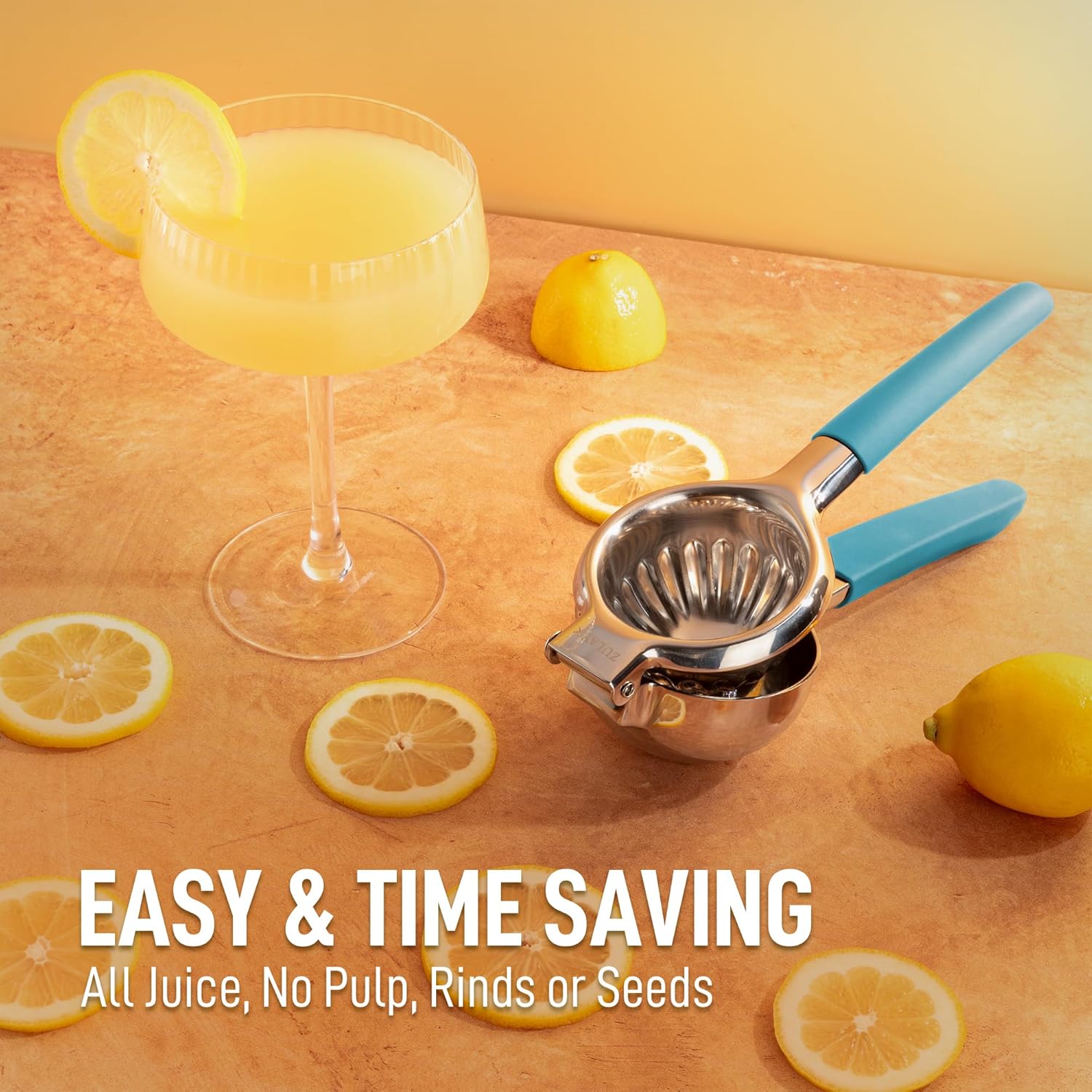 Zulay Kitchen Lemon Squeezer Stainless Steel with Premium Heavy Duty Solid Metal Squeezer Bowl and Food Grade Silicone Handles - Large Manual Citrus Press Juicer and Lime Squeezer (Blue)