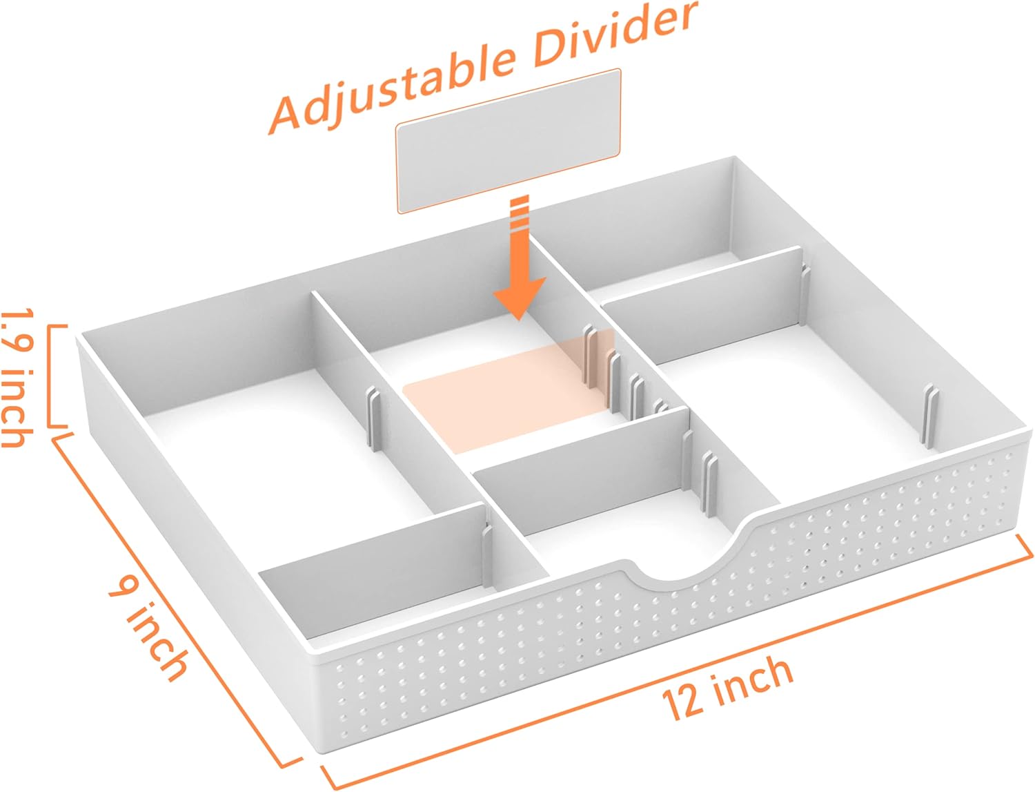 • Adjustable Drawer Organizer: Our drawer organizer has 3 sections with adjustable dividers perfect for desk accessories, pencils, pens and others
