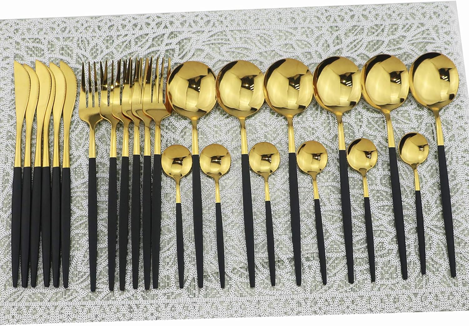 • BLACK with GOLD SILVERWARE SET 24 PIECES: 6 piece dinner fork,6 piece teaspoon,6 piece dinner knife,6 piece tablespoon - service dinner for 6.