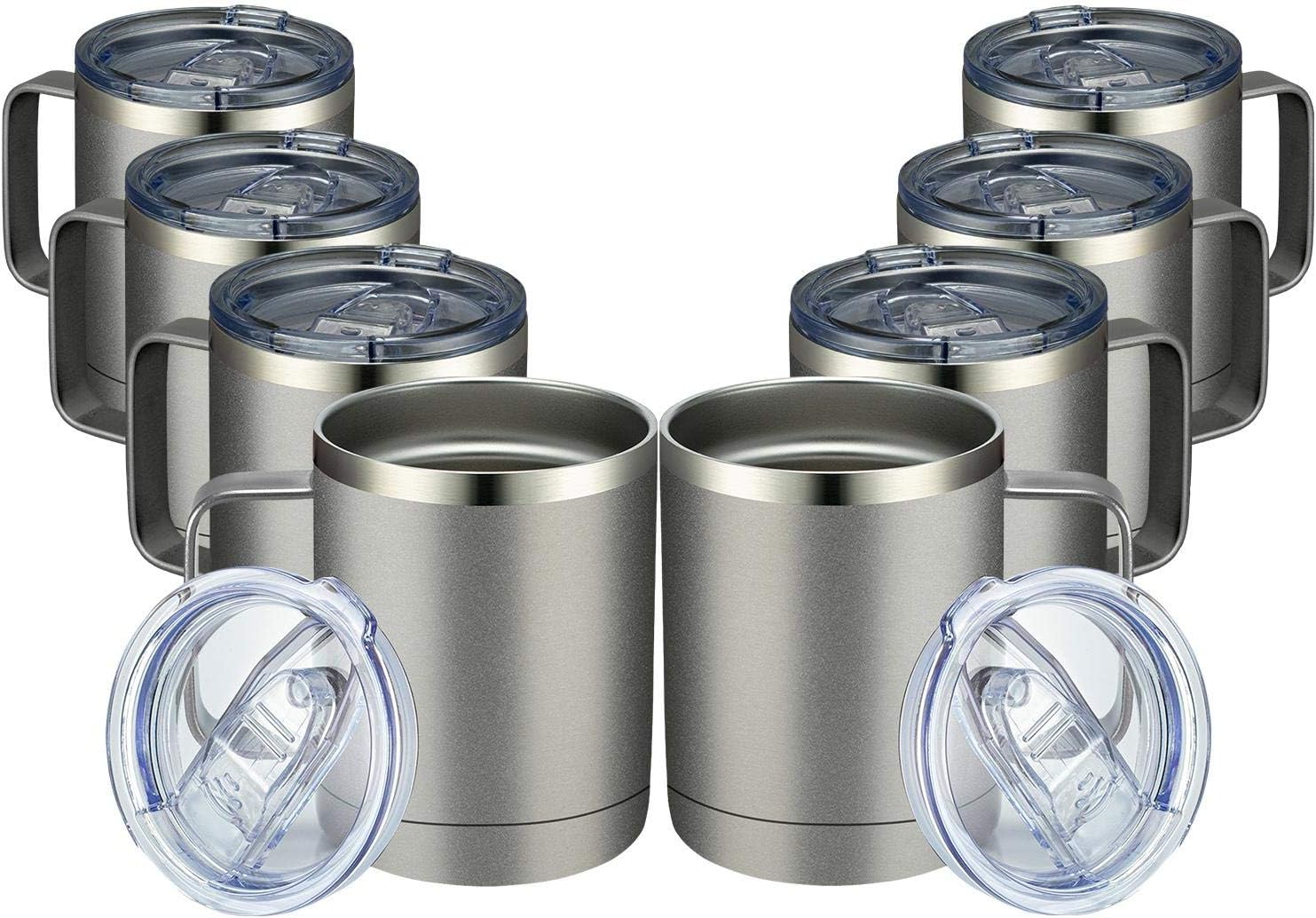 MEWAY 12oz Coffee Mug With Handle 8 Pack Bulk,Stainless Steel Insulated Travel Tumblers With Sliding Lid,Double Wall Vacuum Camping Cup for Hot & Cold Drinks Tea (Cold Grey,Set of 8)