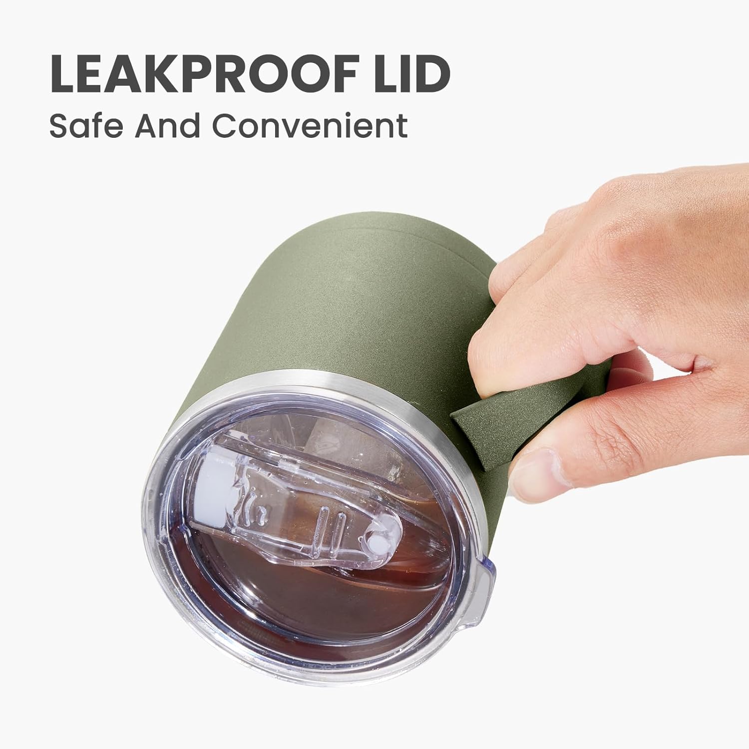 MEWAY 12oz Coffee Mug With Handle 4 Pack Bulk,Stainless Steel Insulated Travel Tumblers With Sliding Lid,Double Wall Vacuum Camping Cup for Hot & Cold Drinks Tea (Army Green,Set of 4)