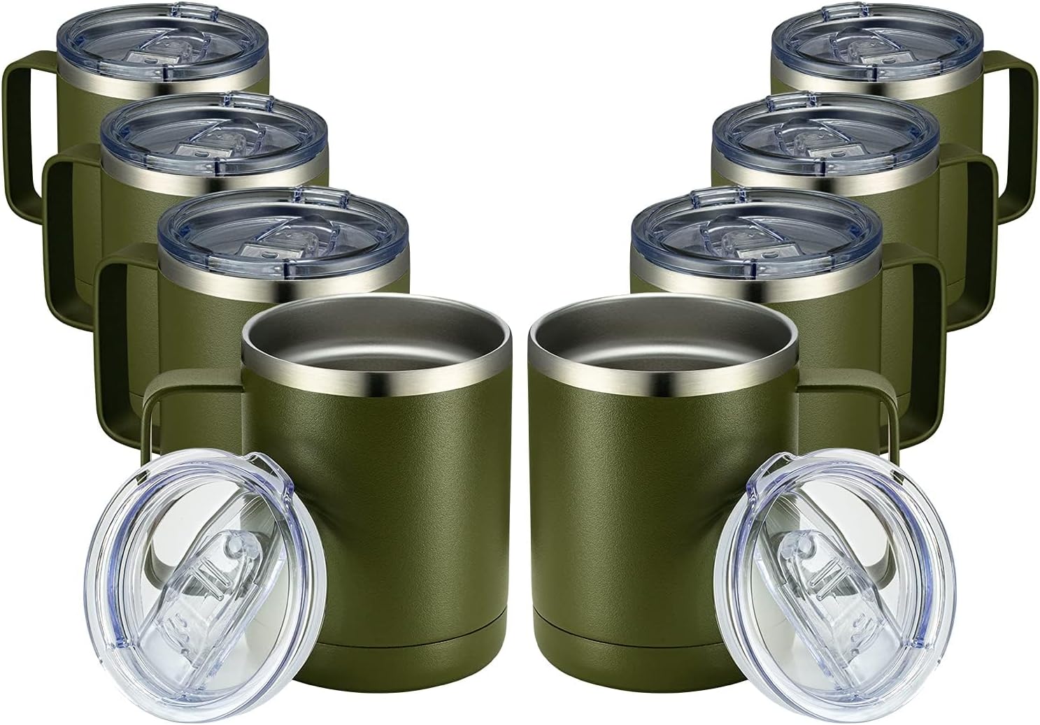 MEWAY 12oz Coffee Mug With Handle 8 Pack Bulk,Stainless Steel Insulated Travel Tumblers With Sliding Lid,Double Wall Vacuum Camping Cup for Hot & Cold Drinks Tea (Army Green,Set of 8)