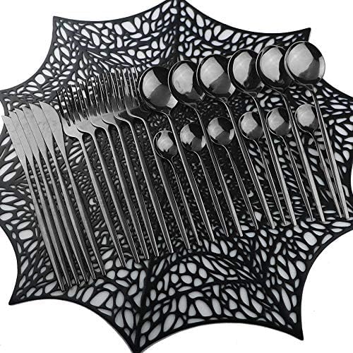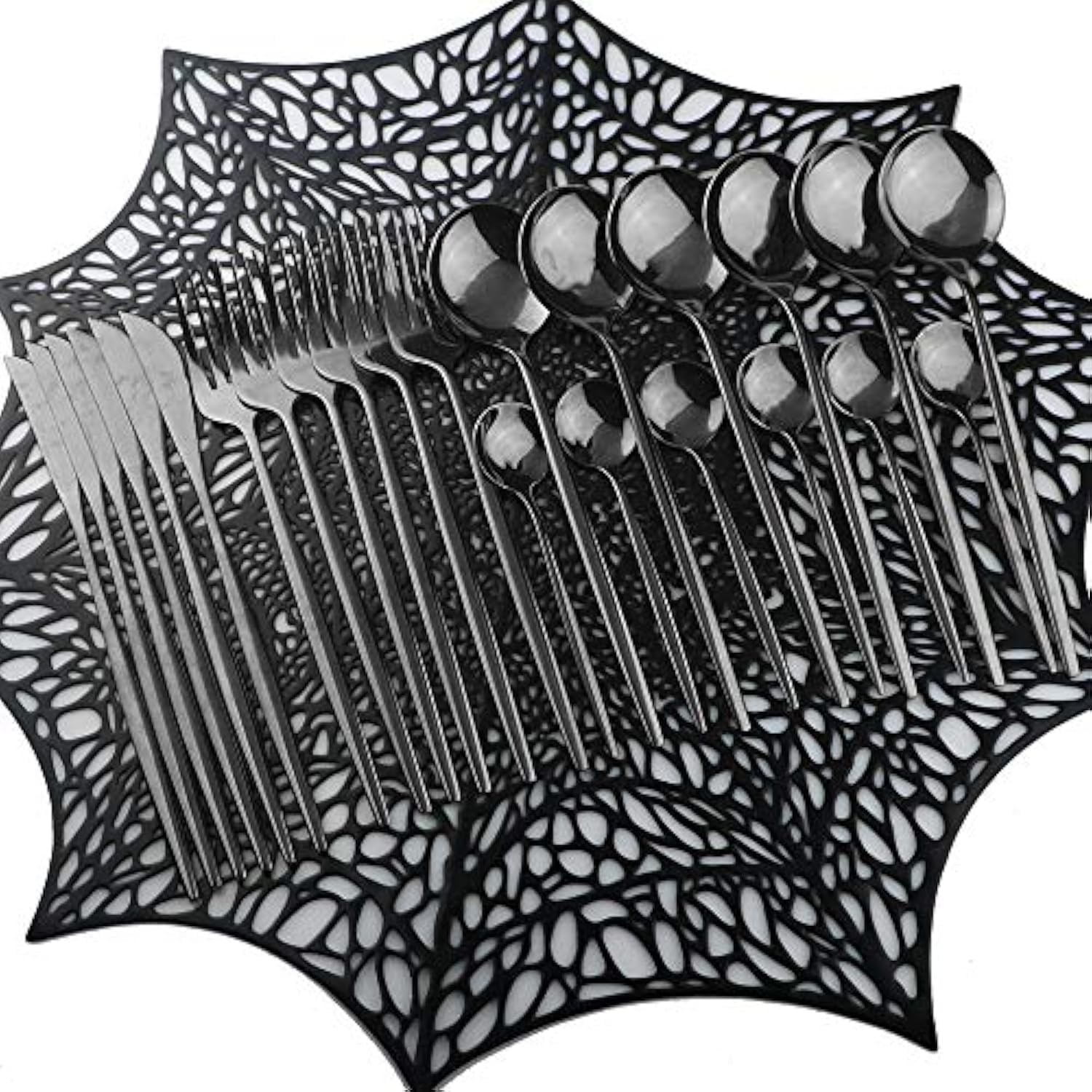 • BLACK SILVERWARE SET 24 PIECES: 6 piece dinner fork,6 piece teaspoon,6 piece dinner knife,6 piece tablespoon - service dinner for 6.