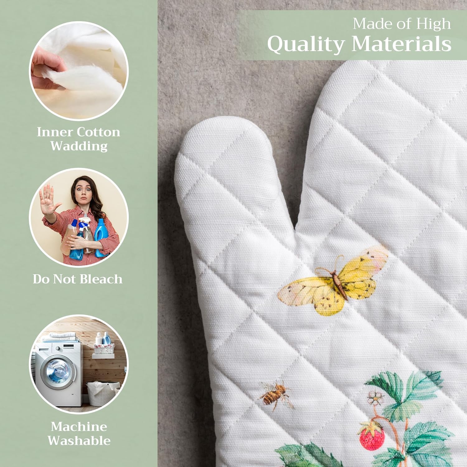 Maison d' Hermine Oven Gloves 100% Cotton Oven Mitt 7" x 13" with Loop Heat Resistant, BBQ, Cooking Gloves, Baking, Grilling, Kitchen, Handling Hot Pans Spring/Summer (Pack of 1, Printemps)