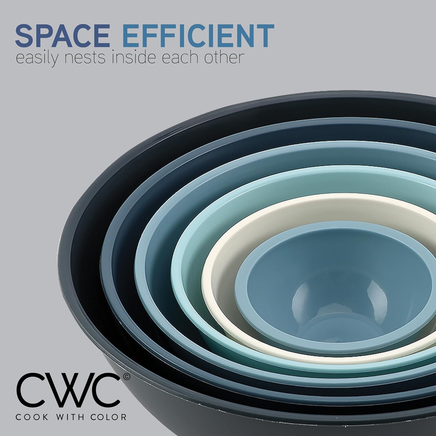 COOK WITH COLOR Plastic Mixing Bowls with Lids - 12 Piece Nesting Bowls Set includes 6 Prep Bowls and 6 Lids, Microwave Safe (Blue Ombre)