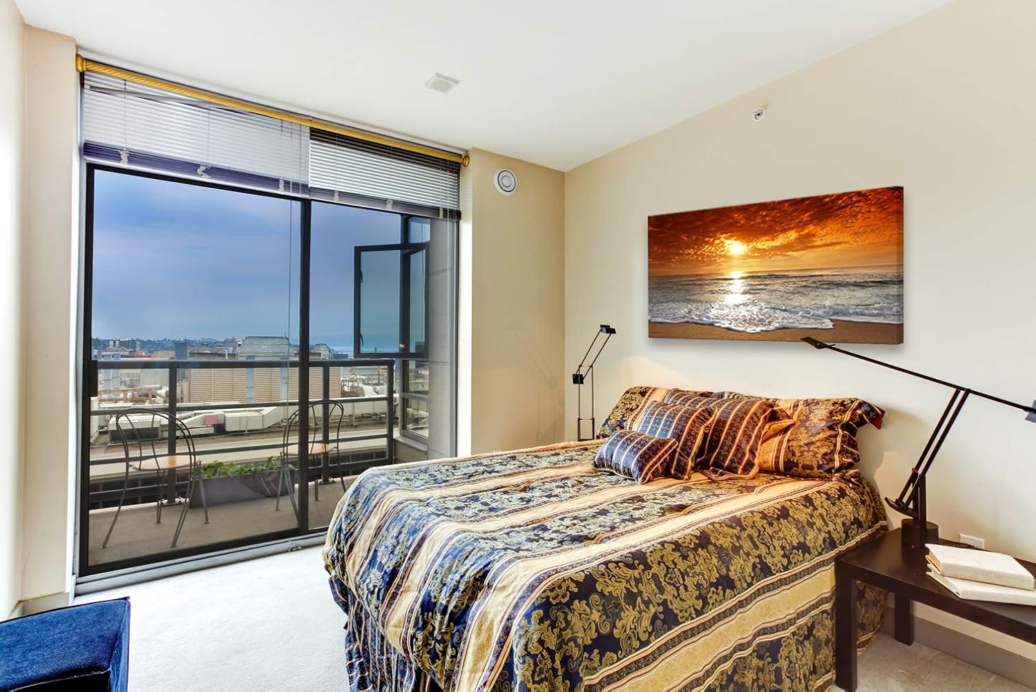 Muolunna S04662 Canvas Prints Wall Art Sunset Ocean Beach Pictures Photo Paintings for Living Room Bedroom Home Decorations Stretched and Framed Ready to Hang Seascape Waves Artwork 24x48inch