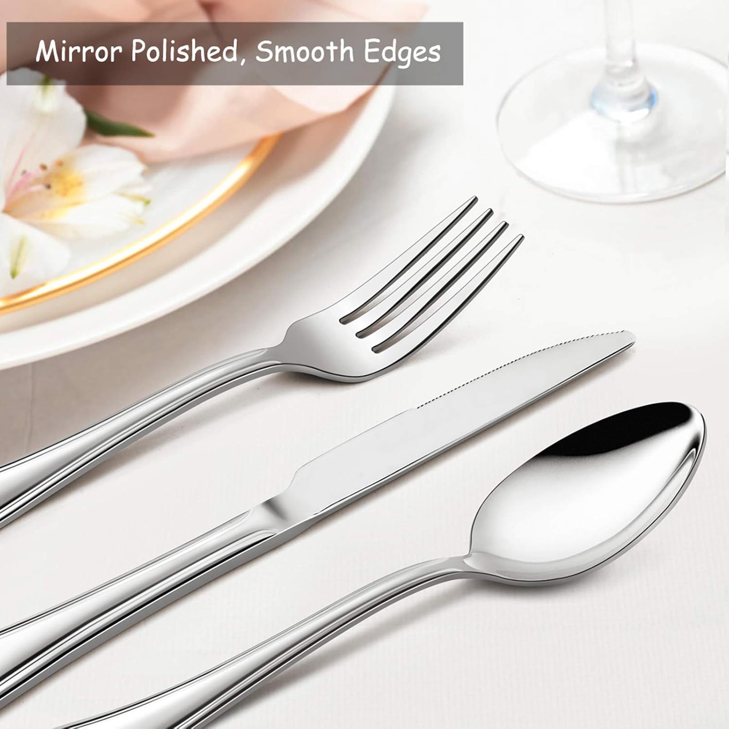 • ELEGANT STYLE - Scalloped-edge handle with ergonomic design, Mirror finish always keep shiny, Stylish and modern flatware matches well with any tableware decor, Elevates dining experience, Impress your family and dinner guests