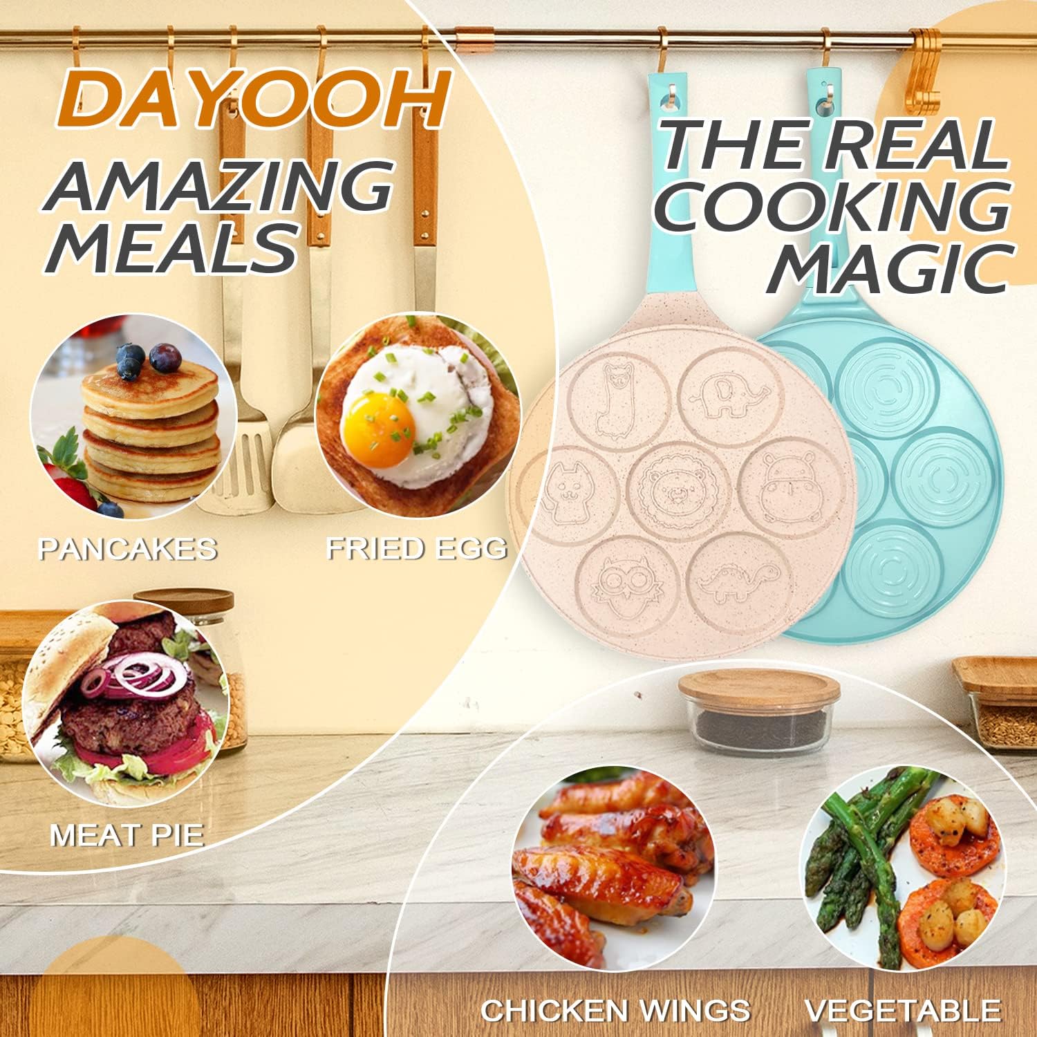 • More Than Pancakes: Our Pan can make individual servings for pancakes,eggs, cookies, burger meat, sausages and vegetables without the need for multiple pots and pans. Great for kids and family or on the go
