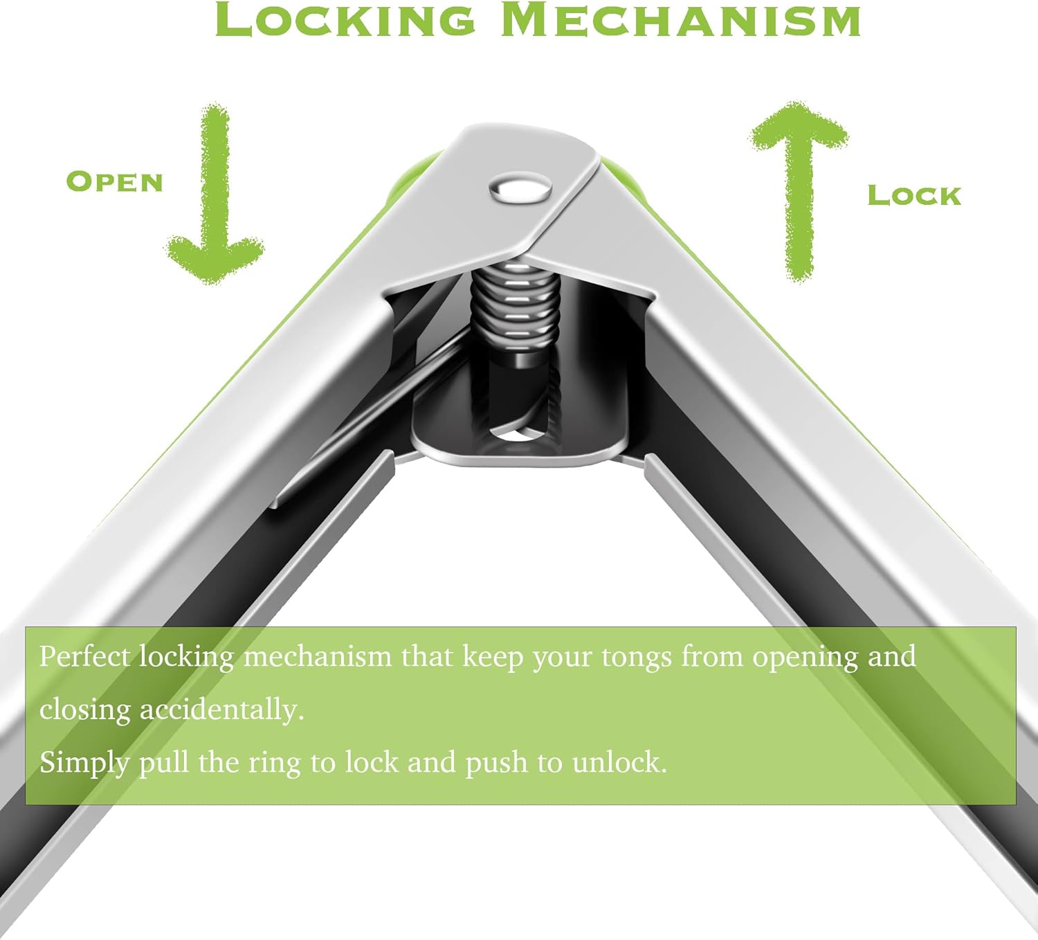 Premium Silicone Set of 2 Cooking Tongs, 9-Inch & 12-Inch BPA Free Non-Stick Stainless Steel BBQ Grilling Locking Food Tong, Light Green