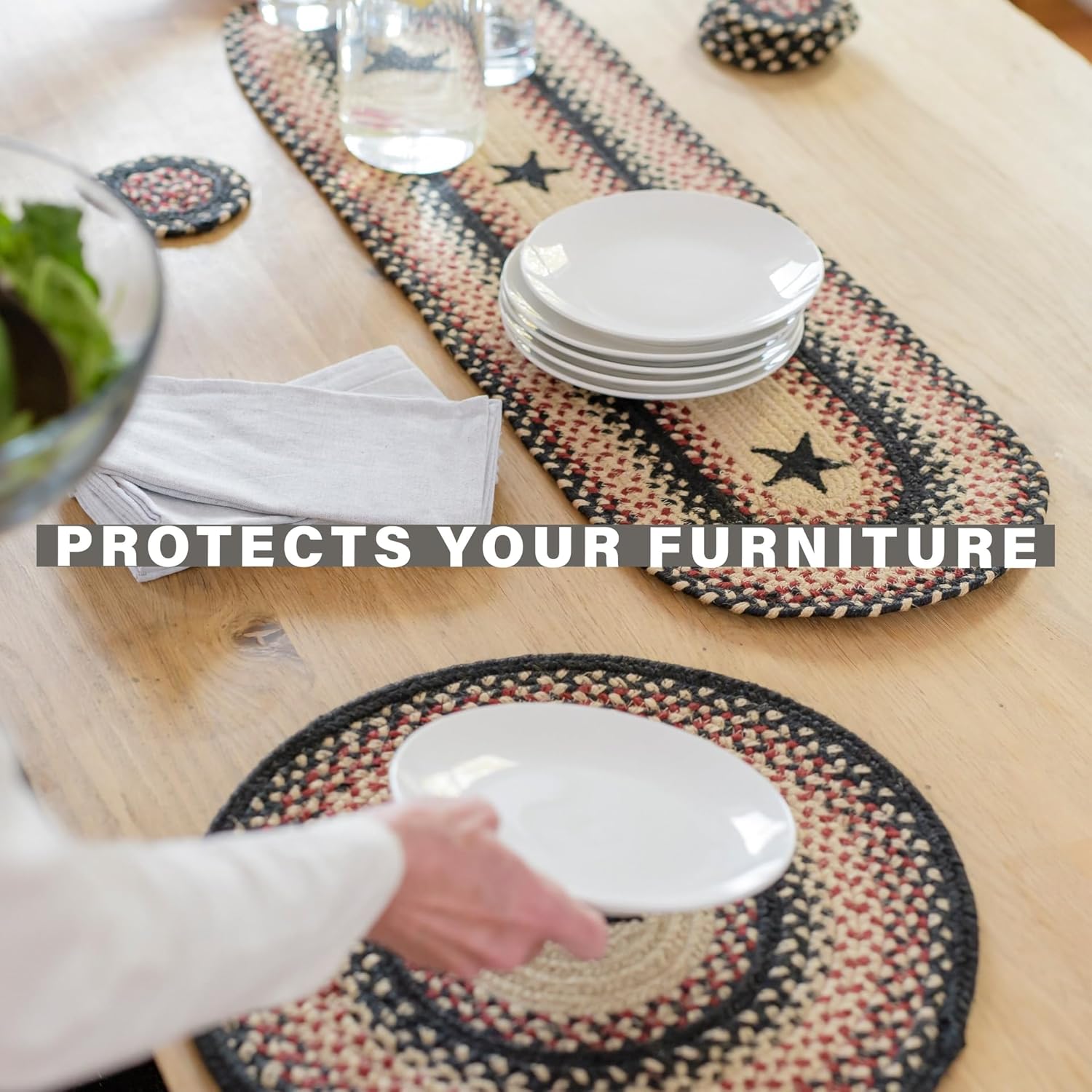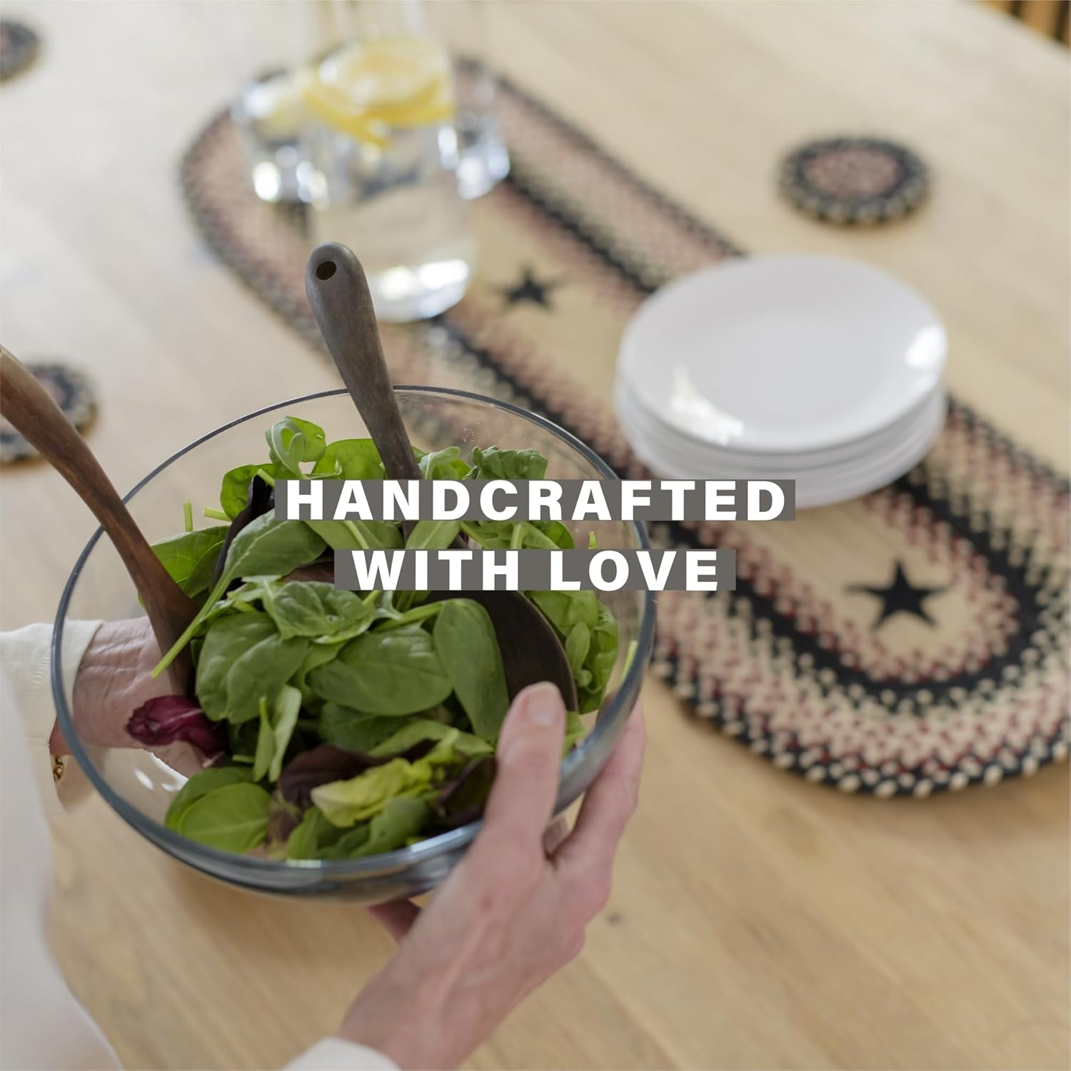 Homespice Primitive Star Gloucester Braided Oval Table Runner, Warm Primitive Decor, Black and Red 11x36 - Jute Dining Table Accessories - Rich Colors, Easy to Clean, Durable and Protects Furniture