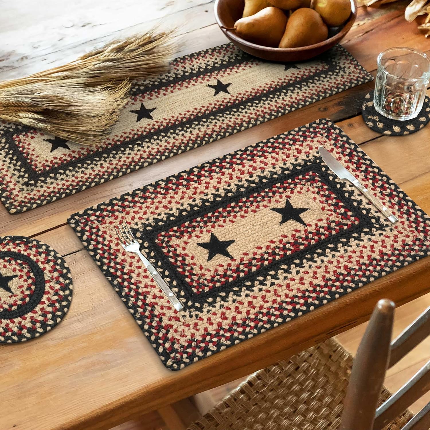 Homespice Primitive Star Gloucester Jute Braided Long Table Runner, Warm Primitive Decor, Black and Red Rectangle 11x36 - Rich Colors, Easy to Clean, Durable and Protects Furniture