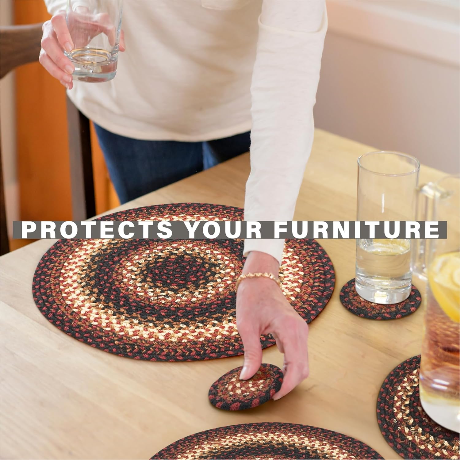 • TABLE MATS SET OF 6 OFFERING PROTECTION AND EASE OF CLEANING: This table mats set of 6 is designed to protect your table from heat and spills while providing an easy-to-clean surface. They lay flat, absorb sound for a quieter atmosphere, and are reversible for extended use. The vibrant blend of colors in each braid makes these rustic placemats not just functional but also a statement piece that complements any decor, ensuring every meal is a special occasion.