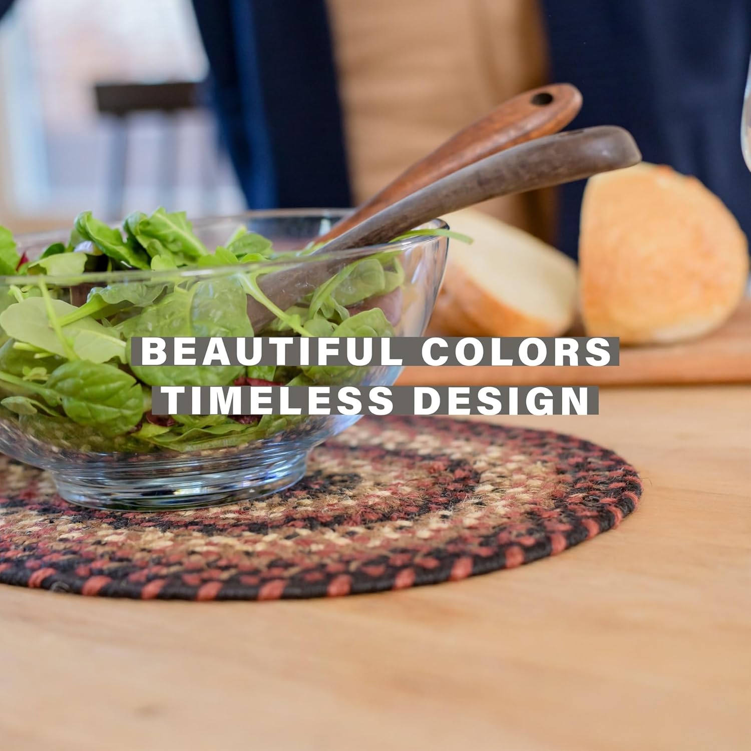 Homespice Prescott Jute Woven Round Placemats Set of 6, 15", Country Primitive Decor, Black and Red Table Mats - Vibrant Colors, Durable, Easy to Clean and Protects Furniture