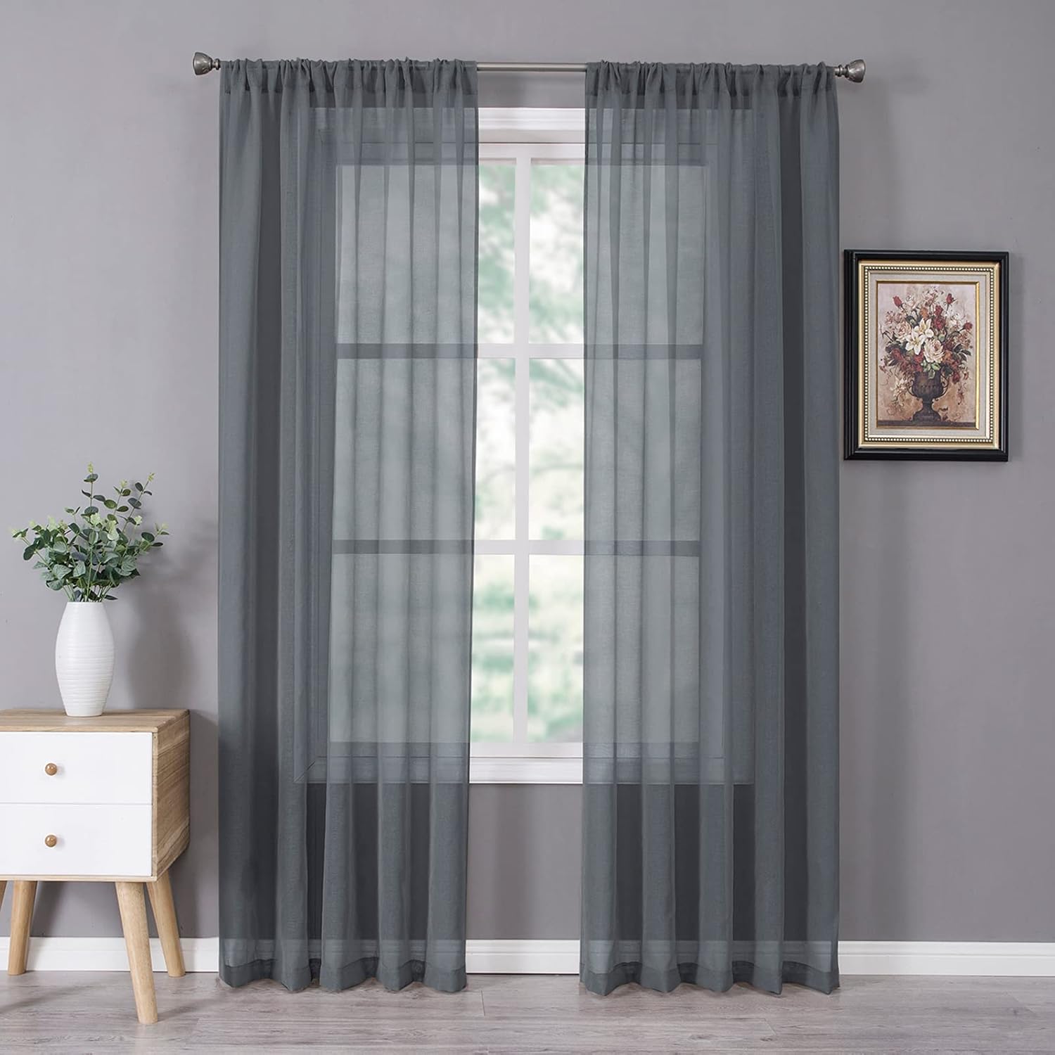 Tollpiz Sheer Curtain Linen Textured Bedroom Curtains Sheer Light Filtering Rod Pocket Voile Curtain for Living Room, 54 x 95 inches Long, Dark Grey, Set of 2 Panels