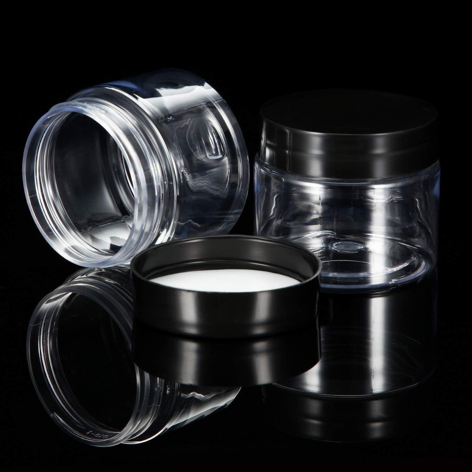 SATINIOR 6 Pack 2 oz Plastic Jars Containers with Lids Wide-mouth Refillable Leakproof Reusable Round Empty Jars for Travel Cosmetic Dry Food Spice Candy Cookie Home Kitchen Organizing(Black)
