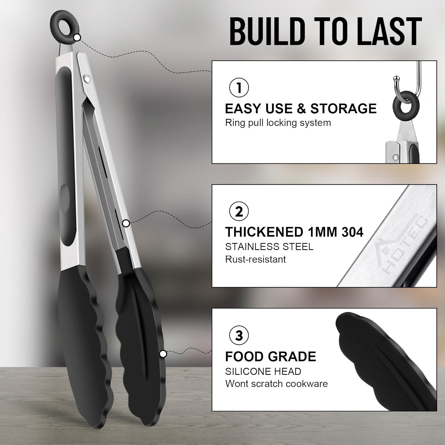 • 🔥 TOP-QUALITY CONSTRUCTION: Crafted from premium stainless steel, Hotec tongs are built to last. They're heat-resistant, rust-proof, corrosion-free, and remarkably lightweight—staying like new even after years of use. This set includes three versatile sizes: 7", 9", and 12".