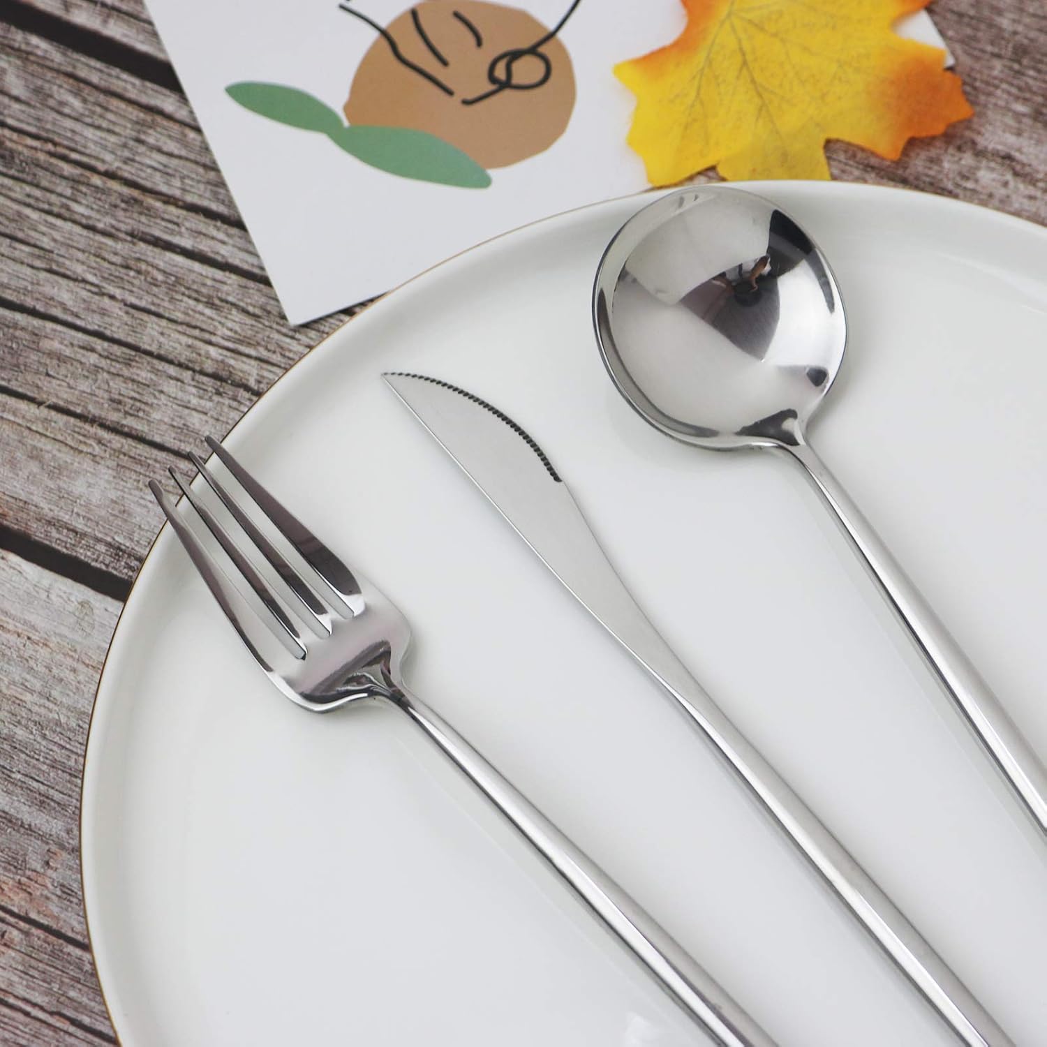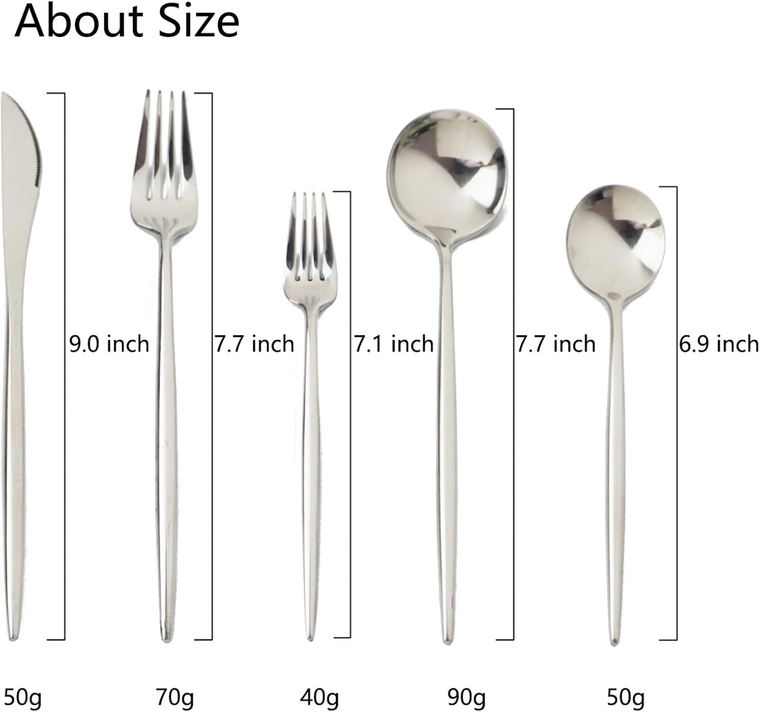 • Luxury and Lustrous Design -- Unique yet extraordinary, this versatile stainless flatware cutlery set features a gleaming mirror polish which requires no repolishing. Elegant design and superior quality makes this silverware set suitable for kitchens,restaurants, events, and everyday meals