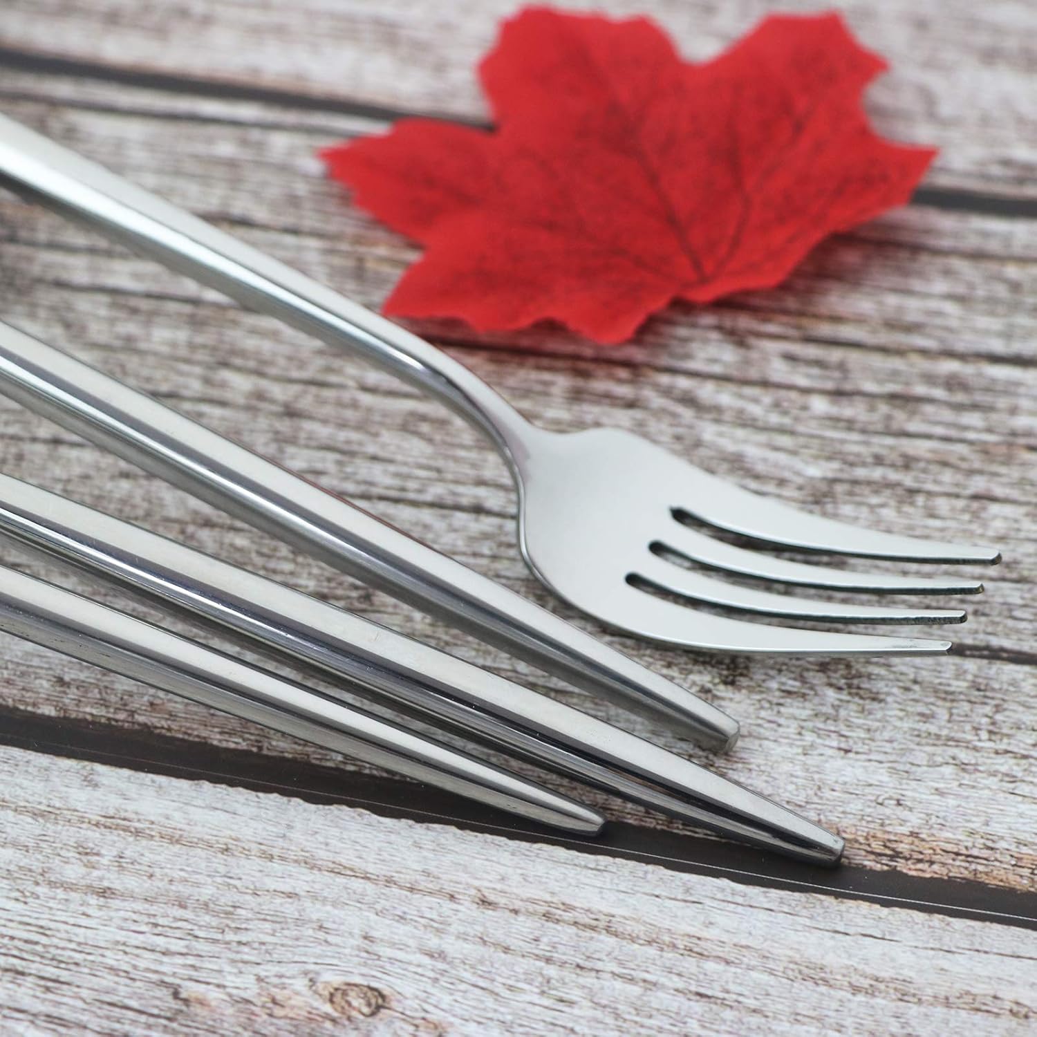 • Stylish and Durable -- Our stainless steel flatware set will not bend, break, or get damaged by heat. The solid and durable construction will perfectly prevent the utensils from snapping even when used for hard applications. It is also designed to provide firm grip for children and adults alike